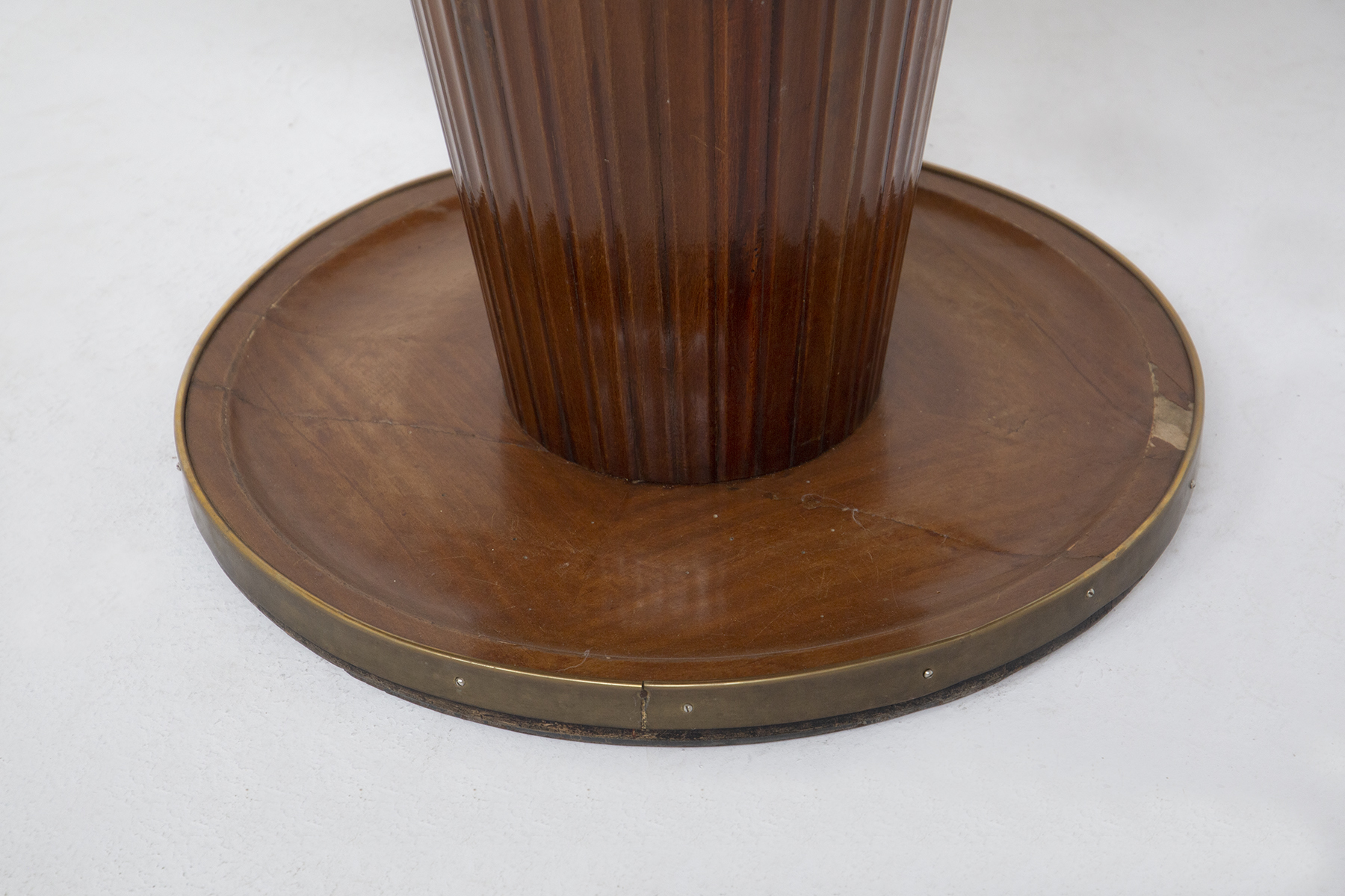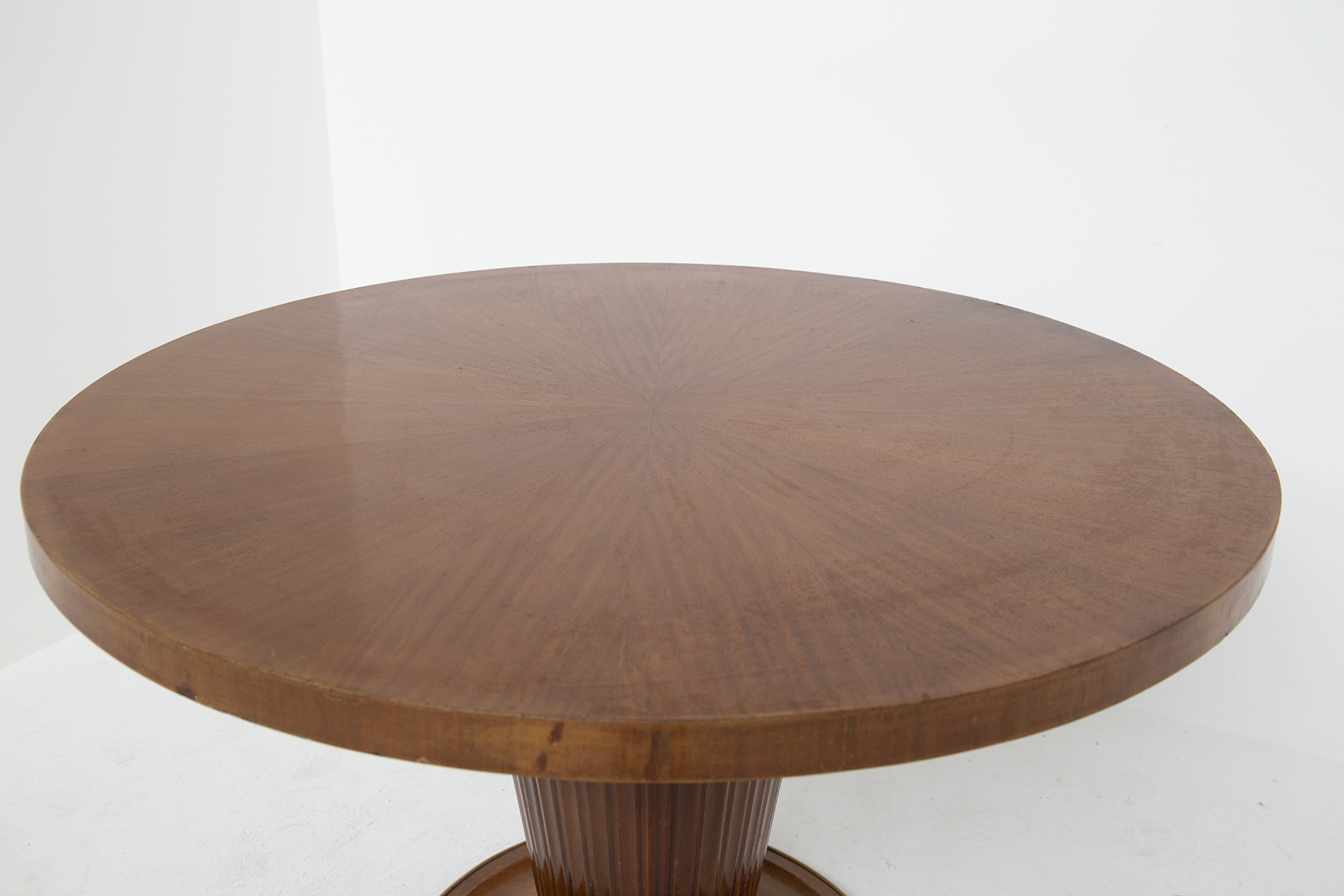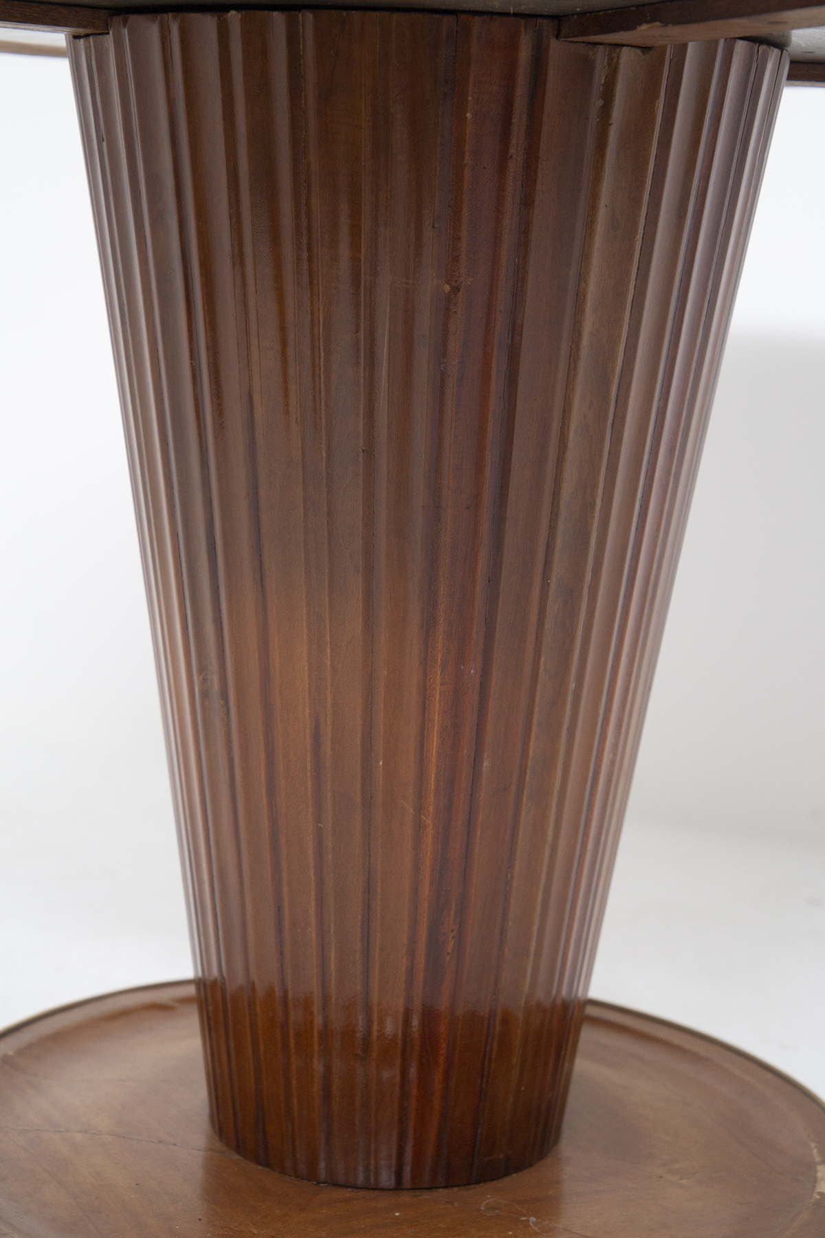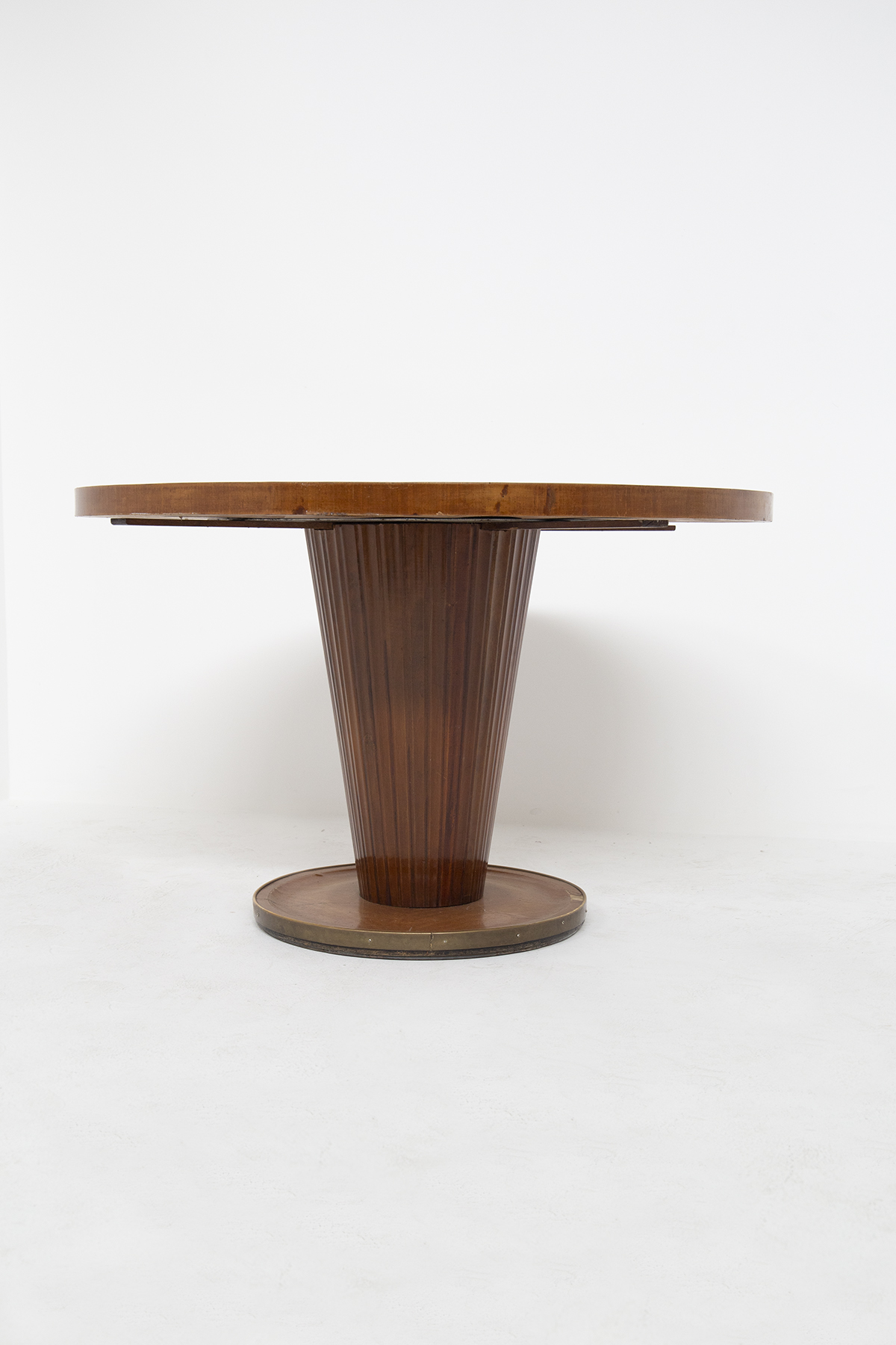 OSVALDO BORSANI (Varedo, 1911 - Milano, 1985). Importante tavolo da pranzo in legno di noce. Anni '50. Lievi graffi. Mis. Alt. cm. 83, Diam. cm. 130 ca.