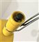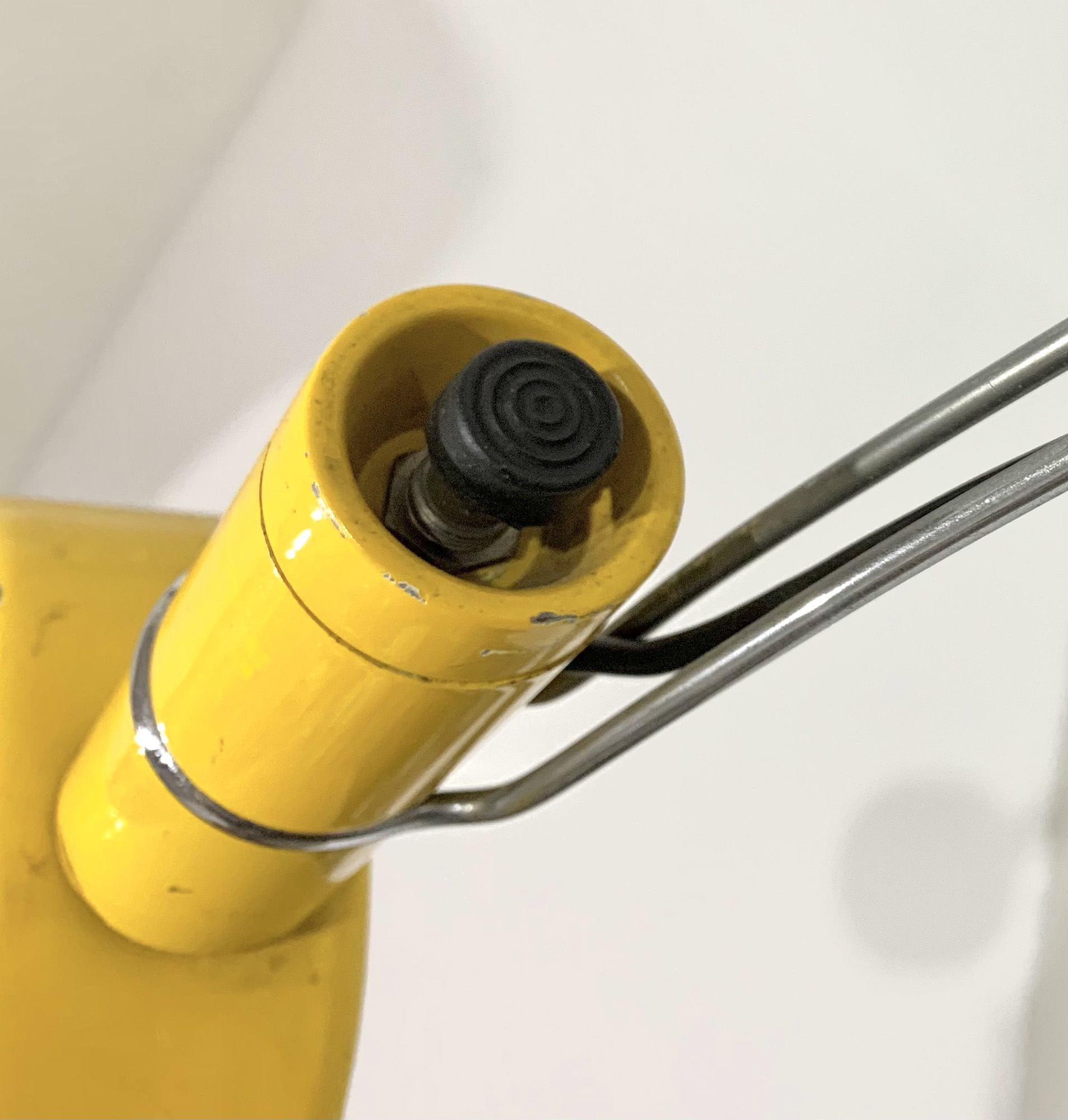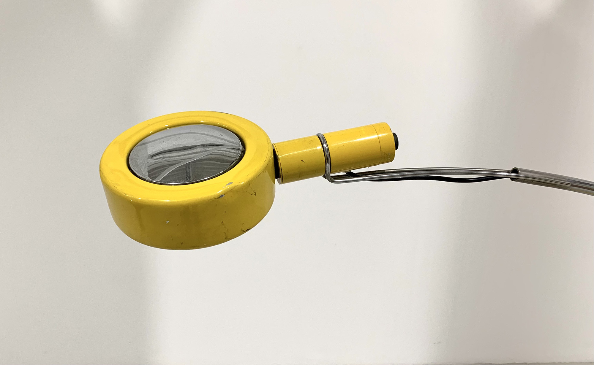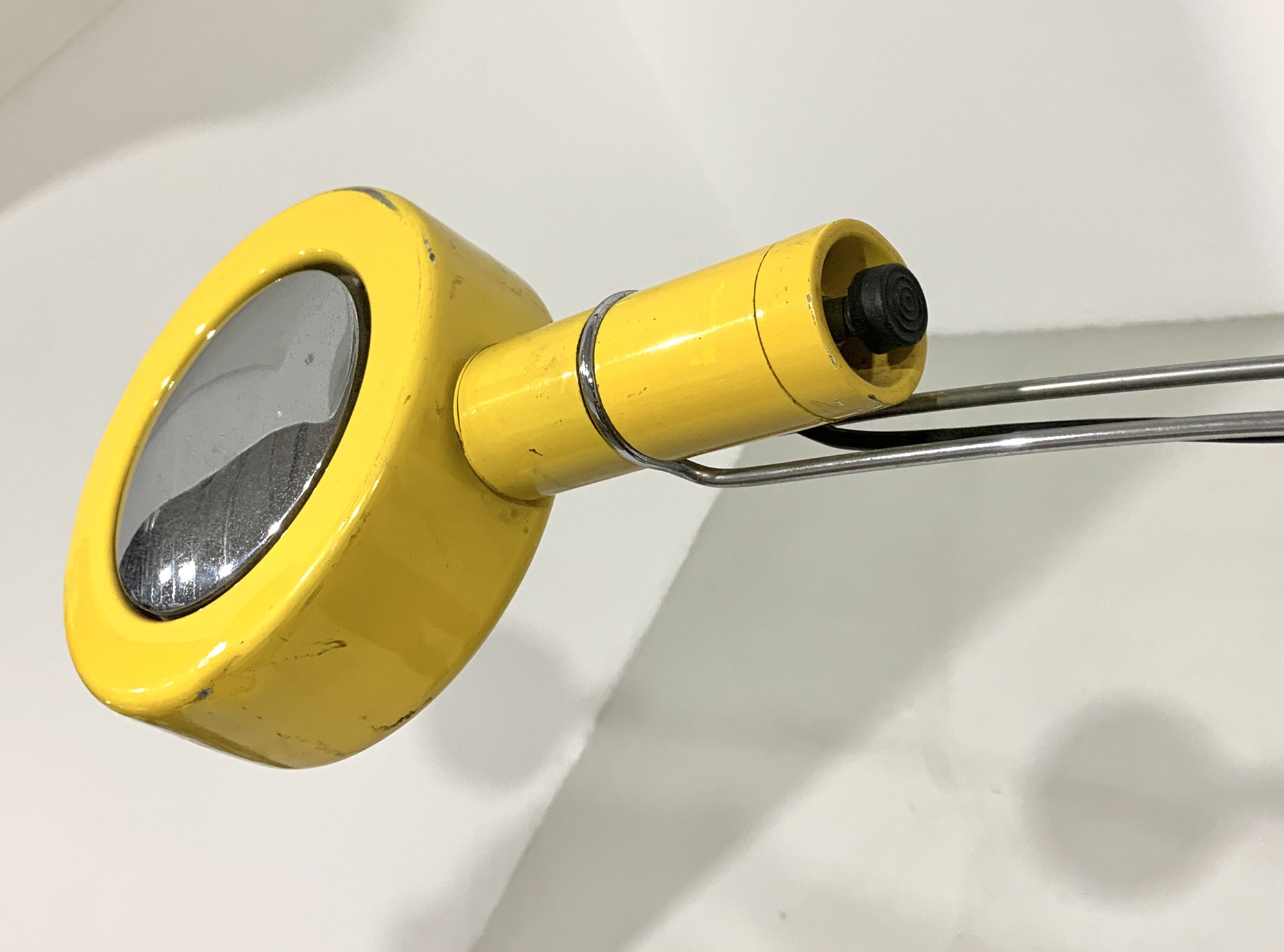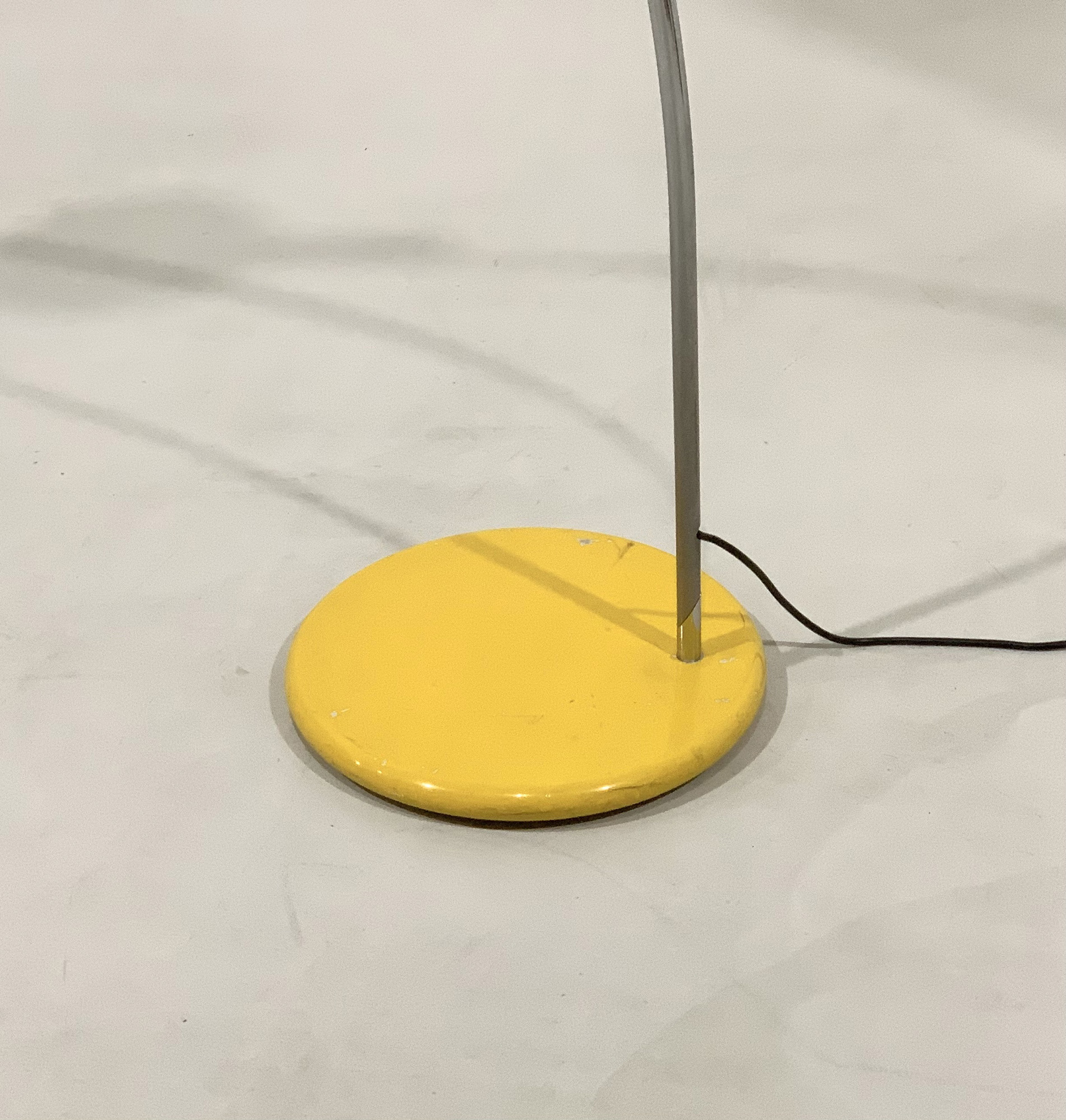 Lampada da terra in metallo laccato giallo. Produzione OLUCE. Anni '70. Difetti. Mis. Alt. cm. 130 ca.