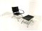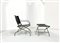 ANTONIO CITTERIO (Meda, 1951)per FLEXFORM. Sedia con pouf in pelle nera e acciaio. Anni '70. Misure sedia: Alt. 77 cm Larg. 59 Prof. 55 cm ca Misure pouf: Alt. 40 cm Larg. 59 Prof. 36 cm ca