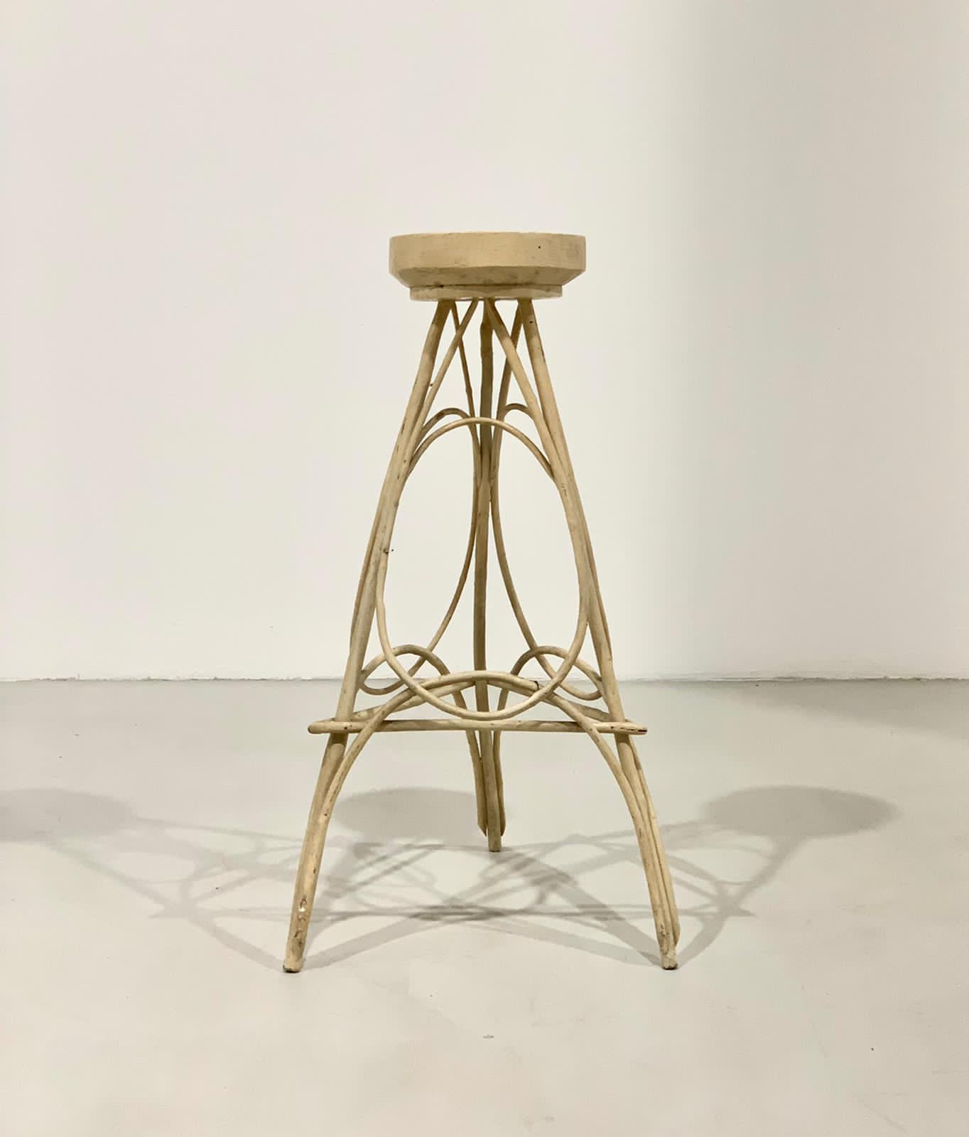 Gueridon in legno laccato beige. Manifattura italiana. Anni '50. Mis. Alt. cm. 72 Diam. cm. 45 ca.