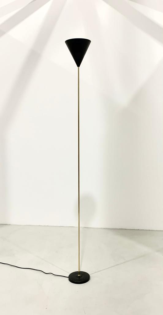 LUIGI CACCIA DOMINIONI (Milano, 1913-2016) per AZUCENA. Lampada da terra in ottone, alluminio verniciato e base in ghisa. Anni '50. Mis. Alt. cm. 192 Diam. cm. 20 ca.