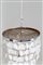 Lampadario in vetro di Murano e metallo cromato. Manifattura italiana. Anni '70. Mis. Alt. cm. 85 Diam. cm. 50 ca.