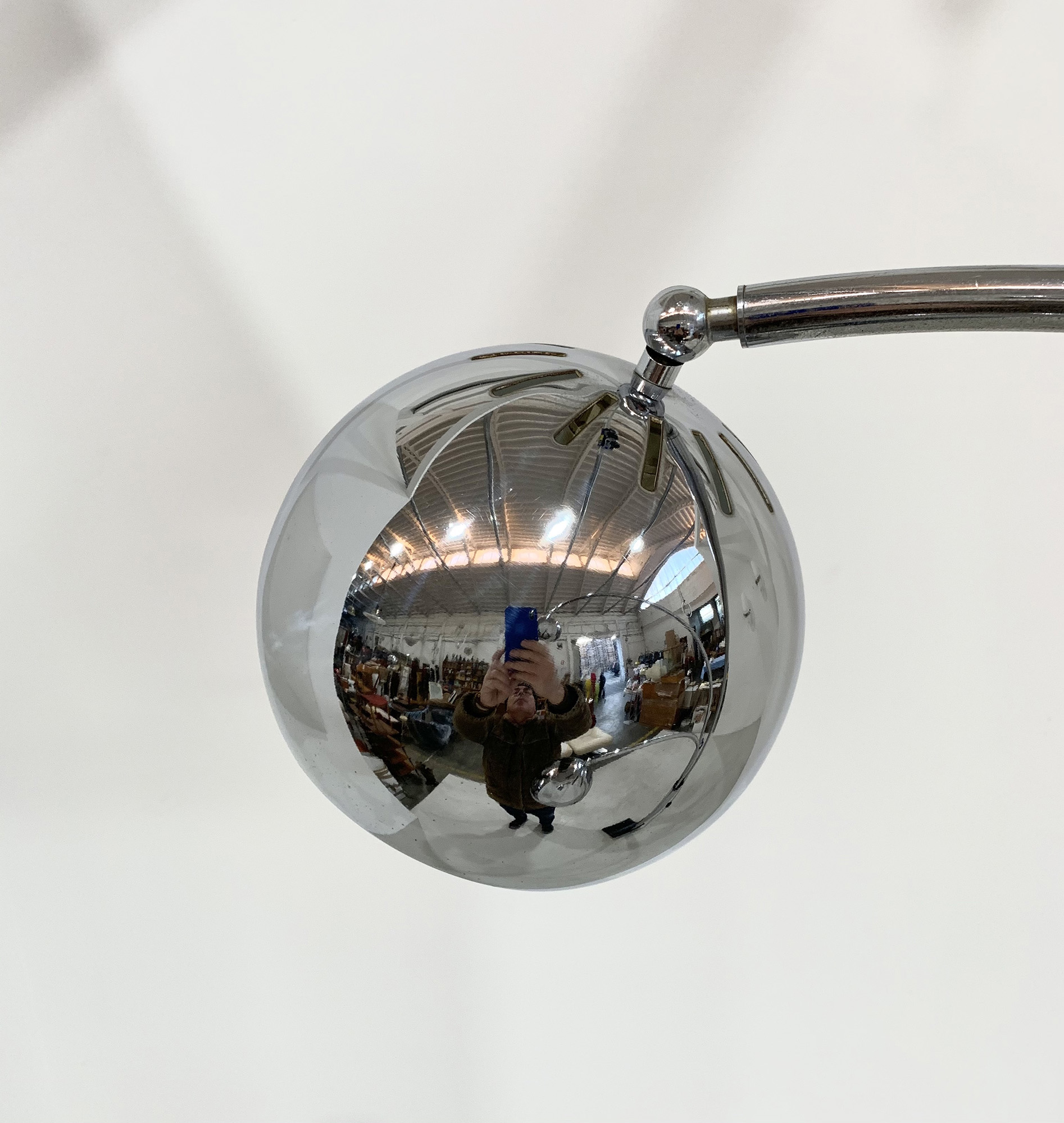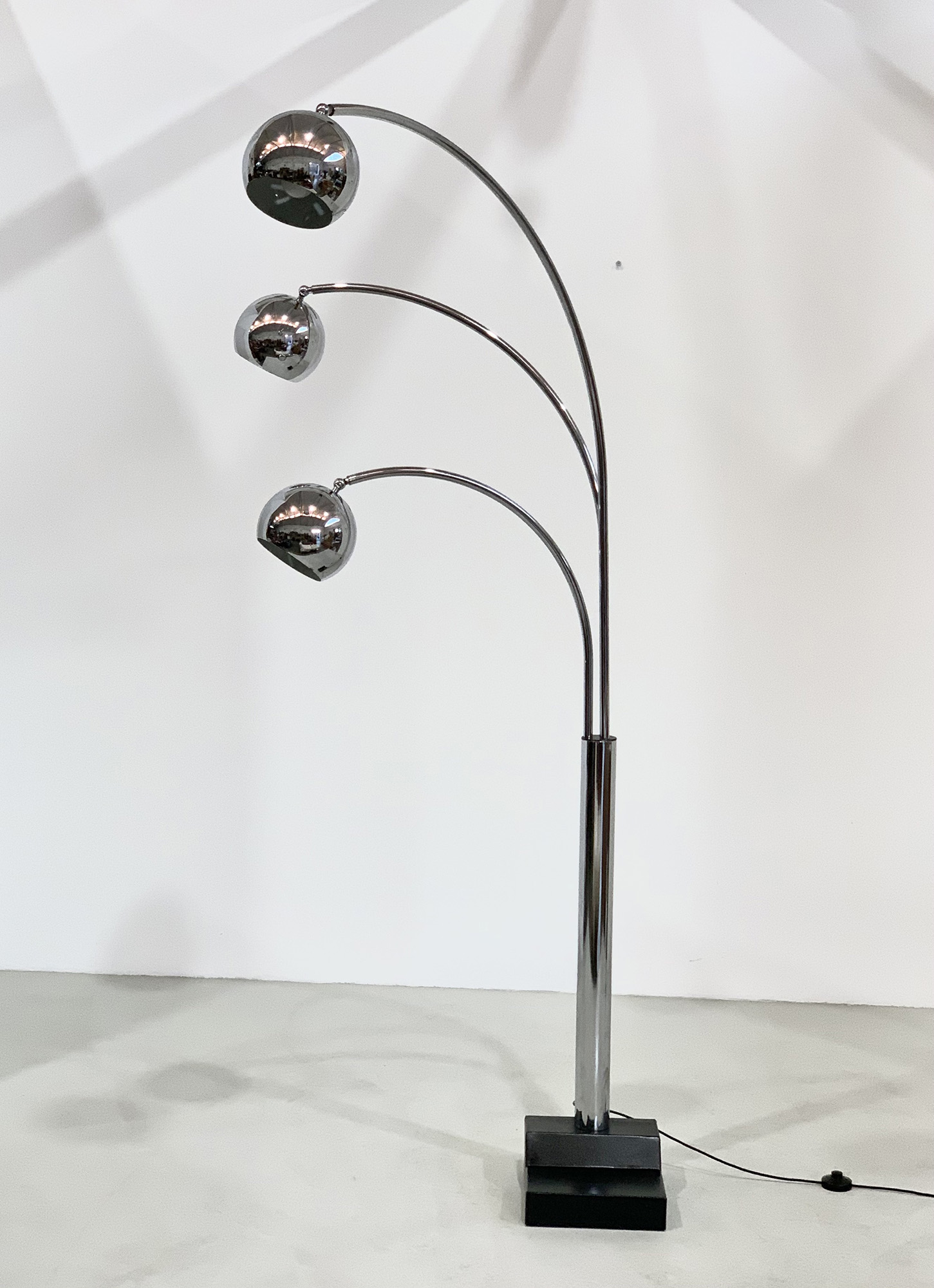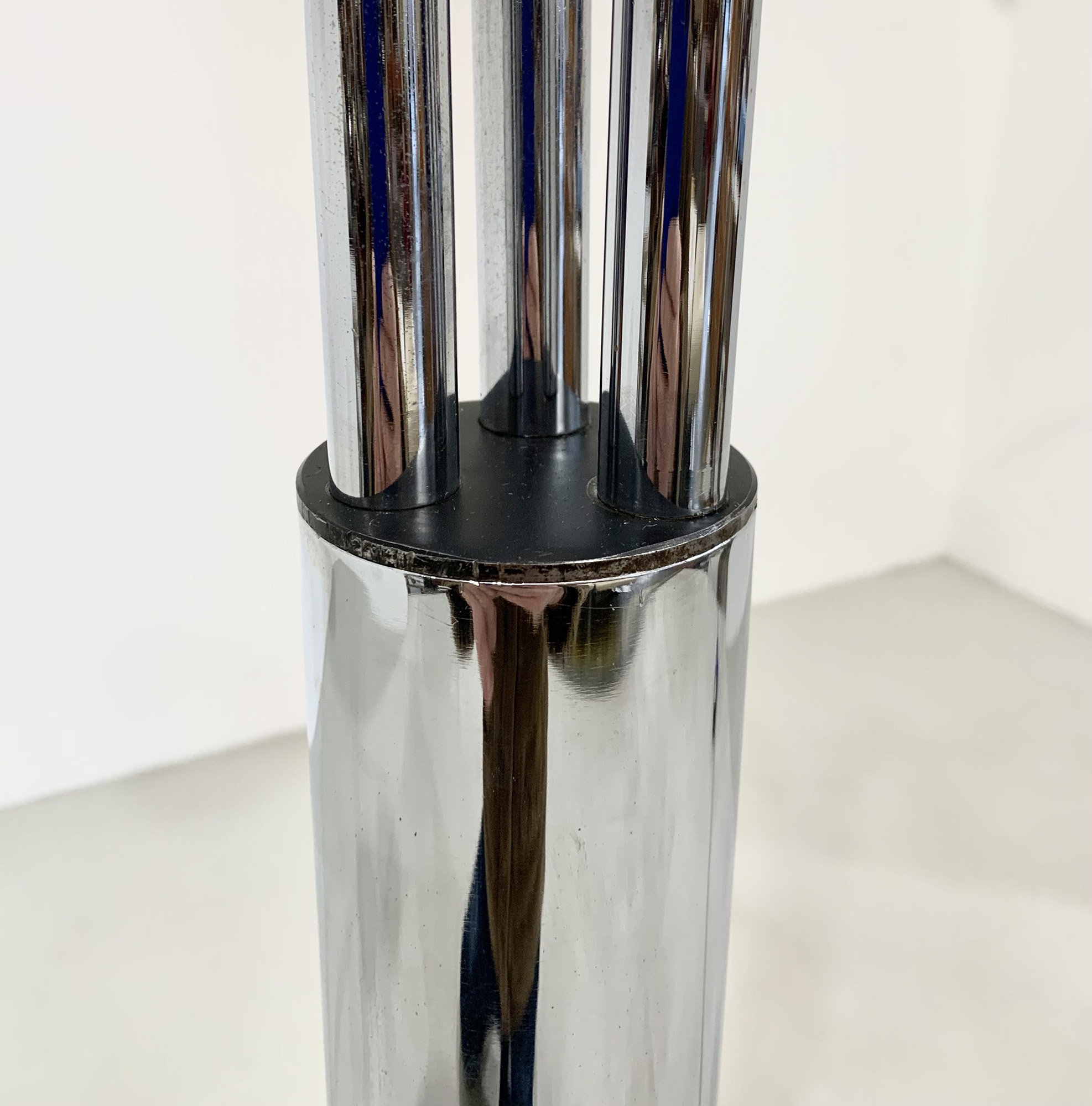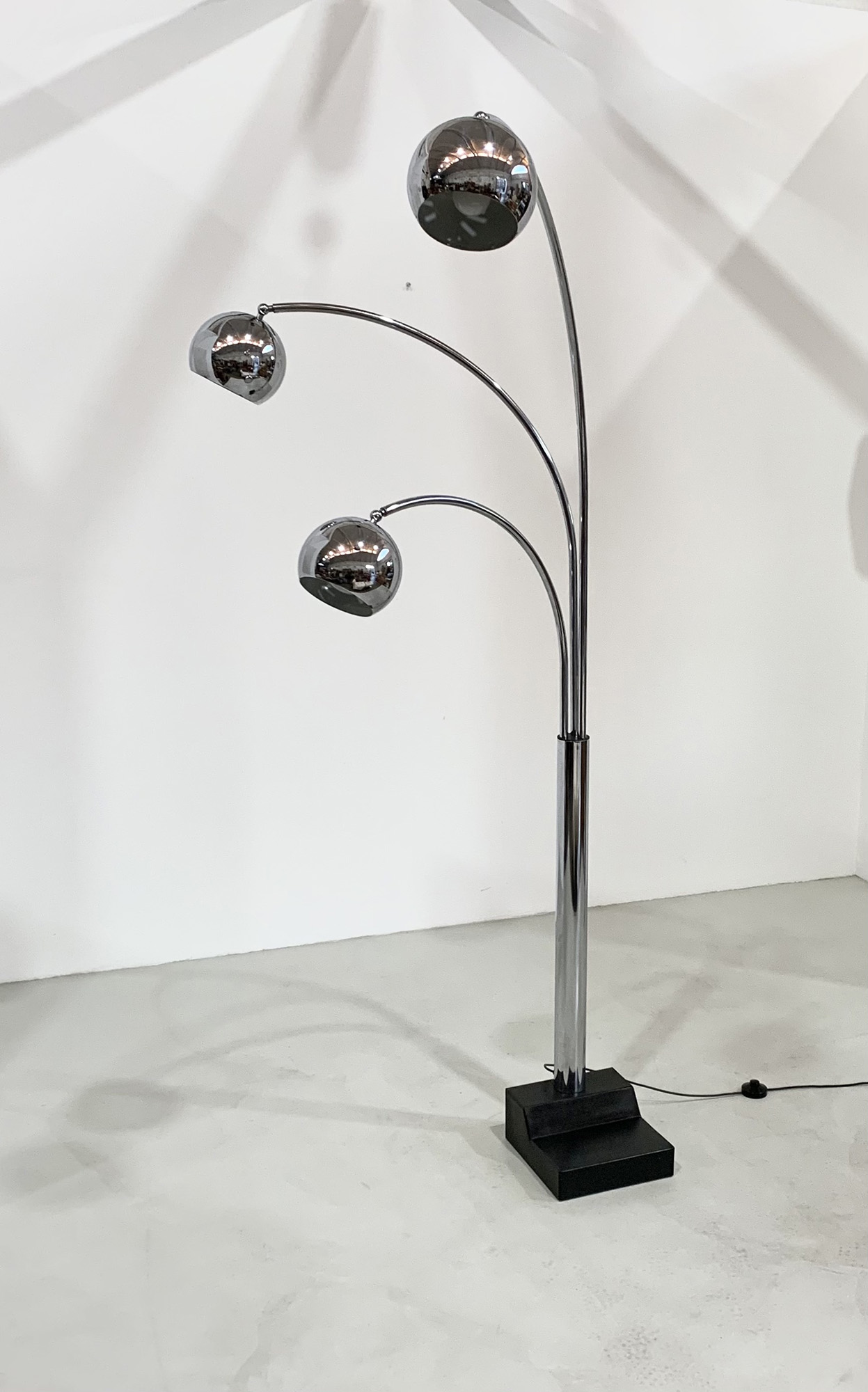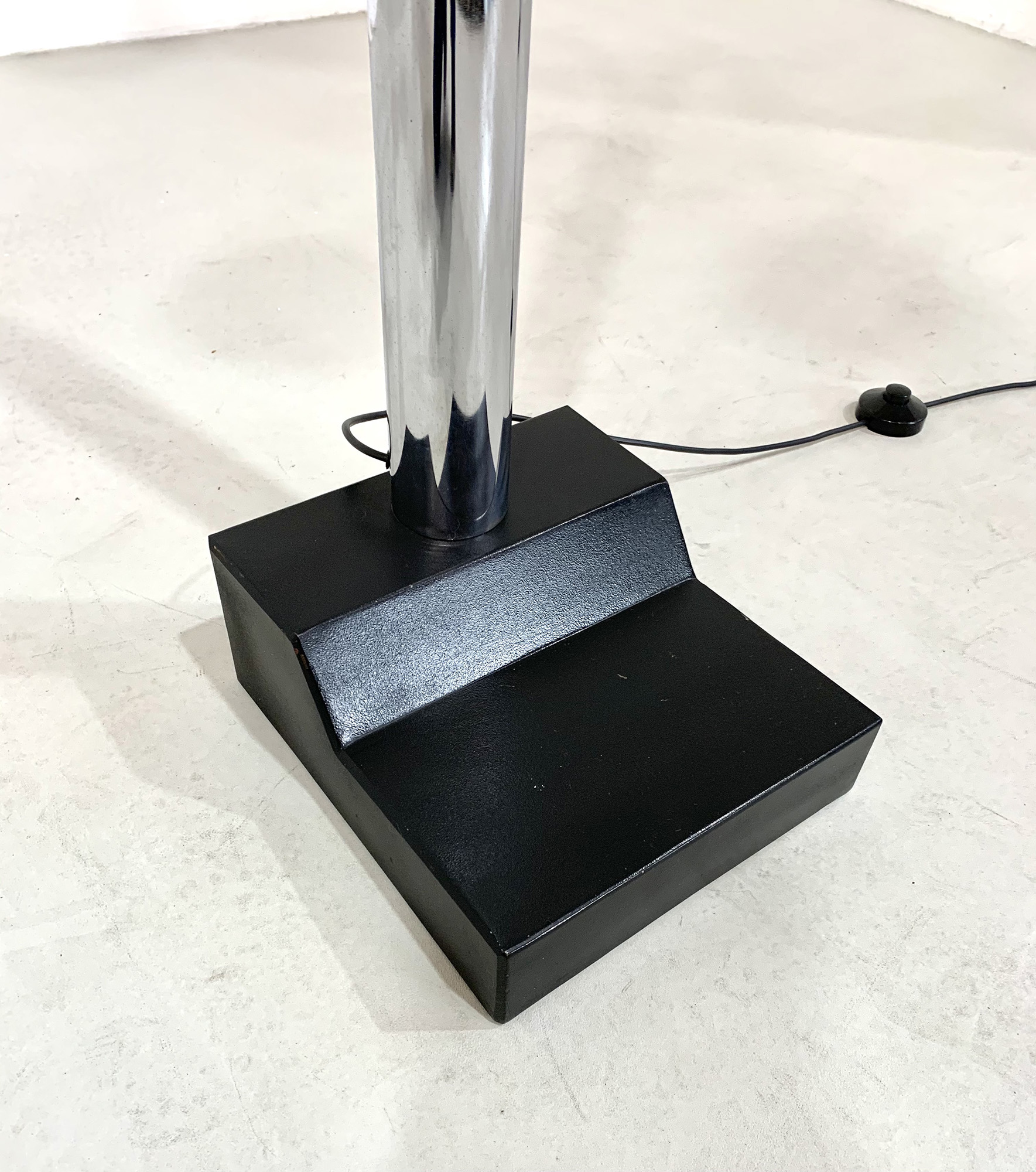 GOFFREDO REGGIANI. Lampada da terra in metallo cromato e base in ghisa. Anni '70. Mis. Alt. cm. 220 Diam. cm. 200 ca.