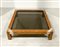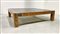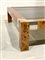 Tavolino in legno con piano in vetro fumè e inserti in metallo cromatico. Anni '70. Mis. Lung. cm. 130 Alt. cm. 35 Prof. cm. 130 ca.