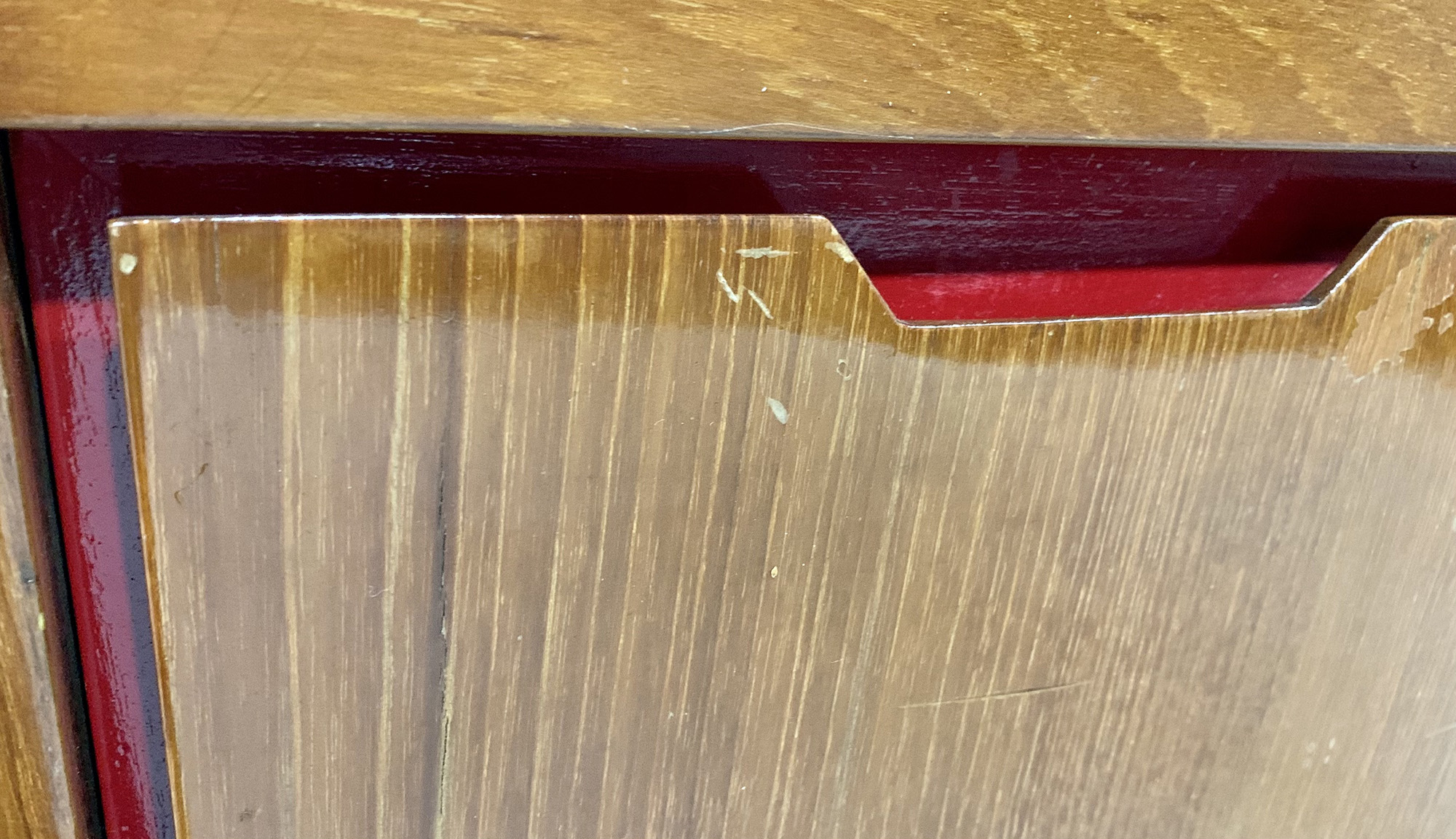 Piccola credenza in teak. Produzione LA PERMANENTE MOBILI CANTU'. Anni '50. Mis. Lung. cm. 60 Alt. cm. 75 Prof. cm. 35 ca.