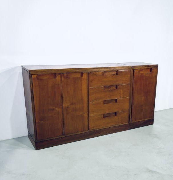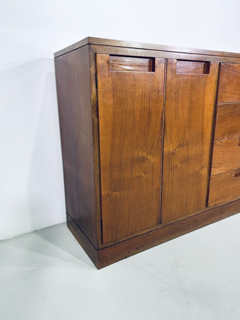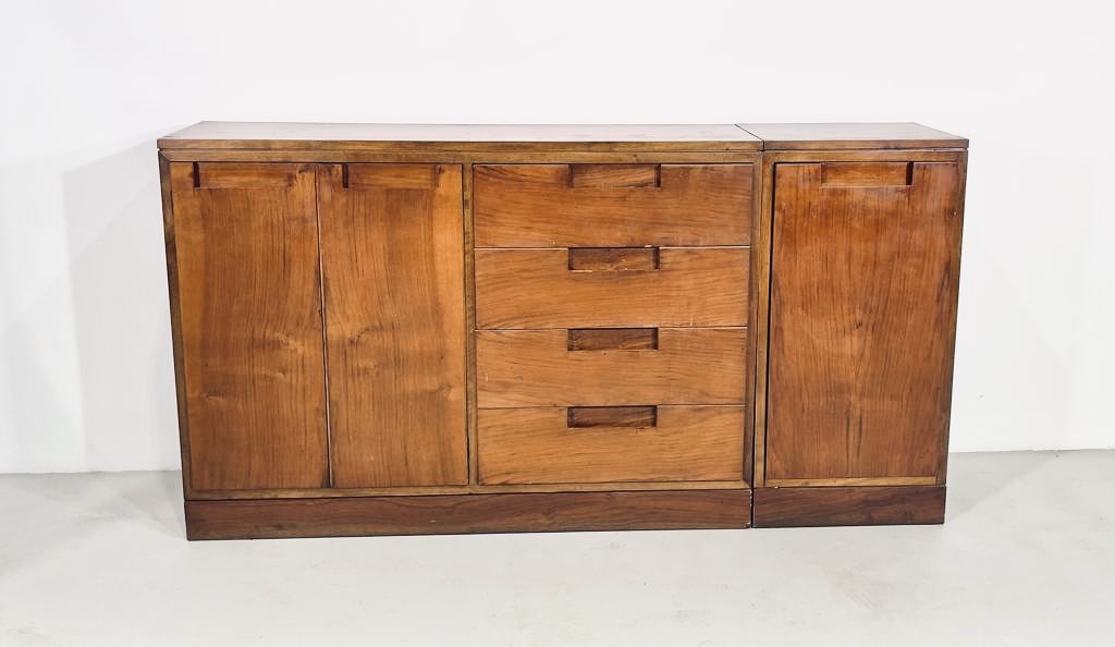 MICHELE ACHILLI (Milano, 1930), DANIELE BRIGIDINI E GUIDO CANELLA (Bucarest, 1931 - Milano, 2009). Cabinet in noce a tre ante con fascia di cassetti centrale. Produzione RUSCONI. Anni '60. Mis. Lung. cm. 172 Alt. cm. 90 Prof. cm. 40 ca.