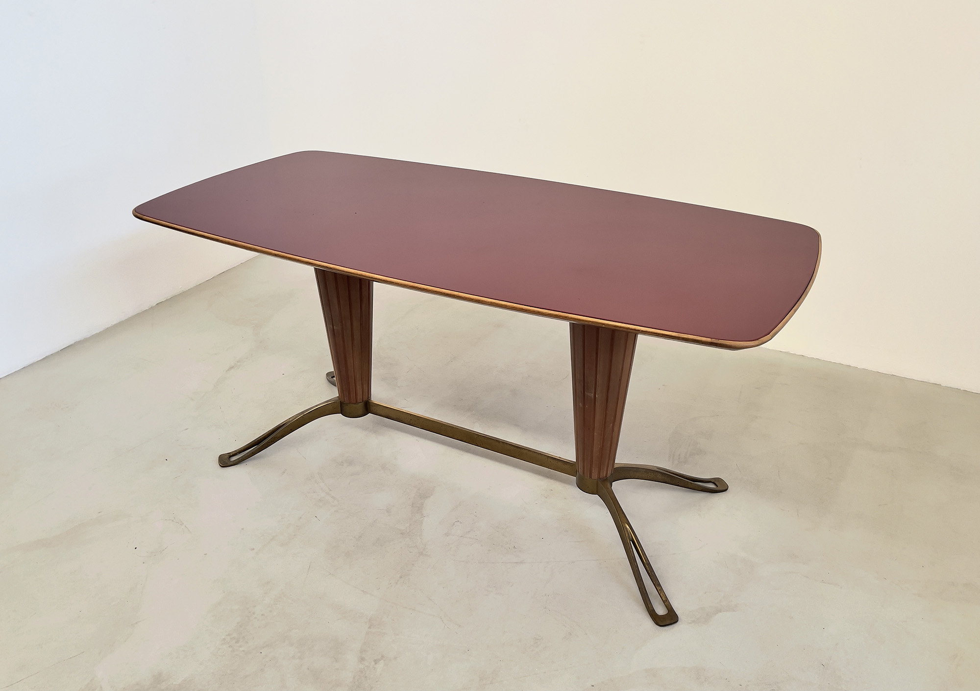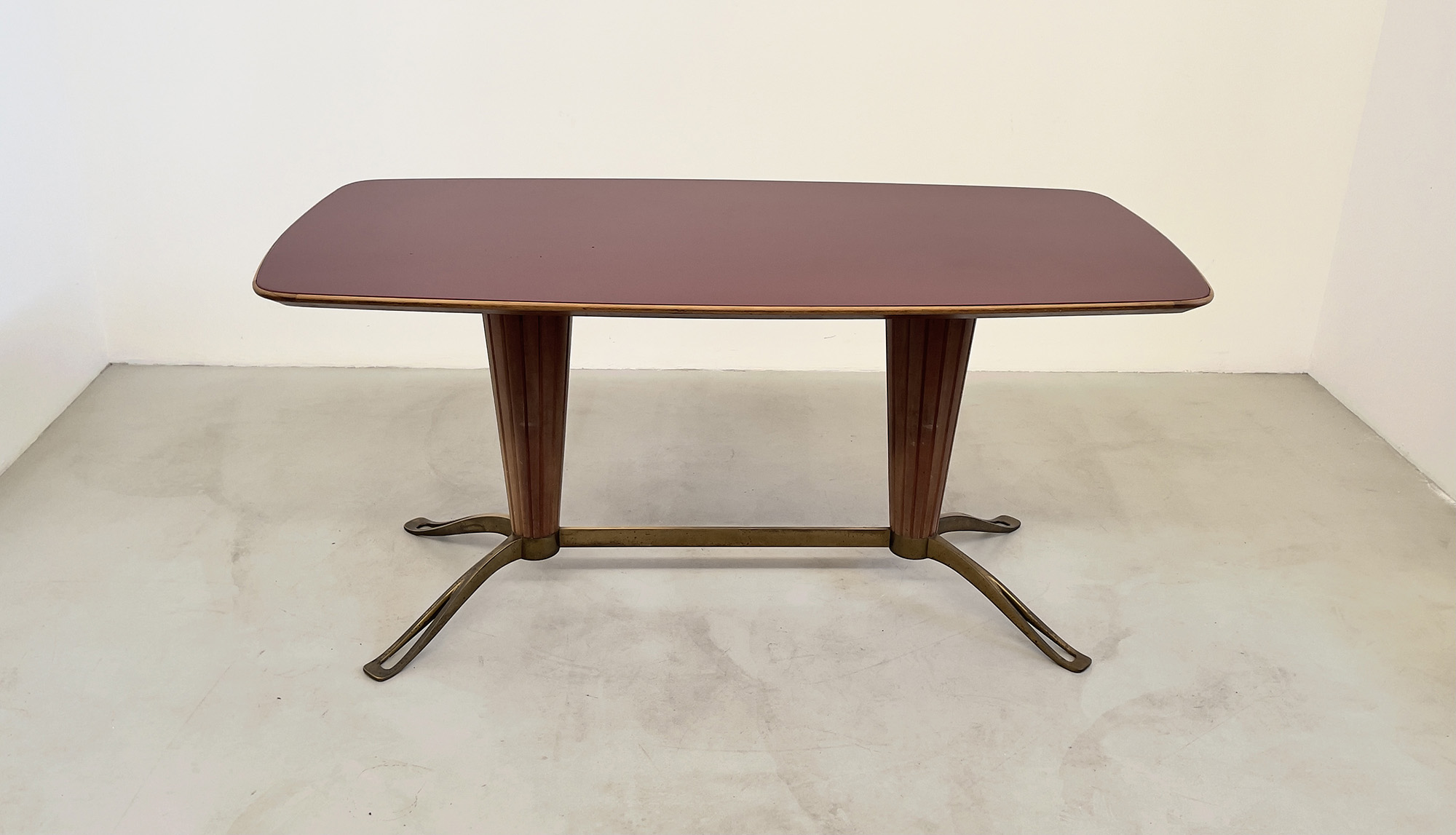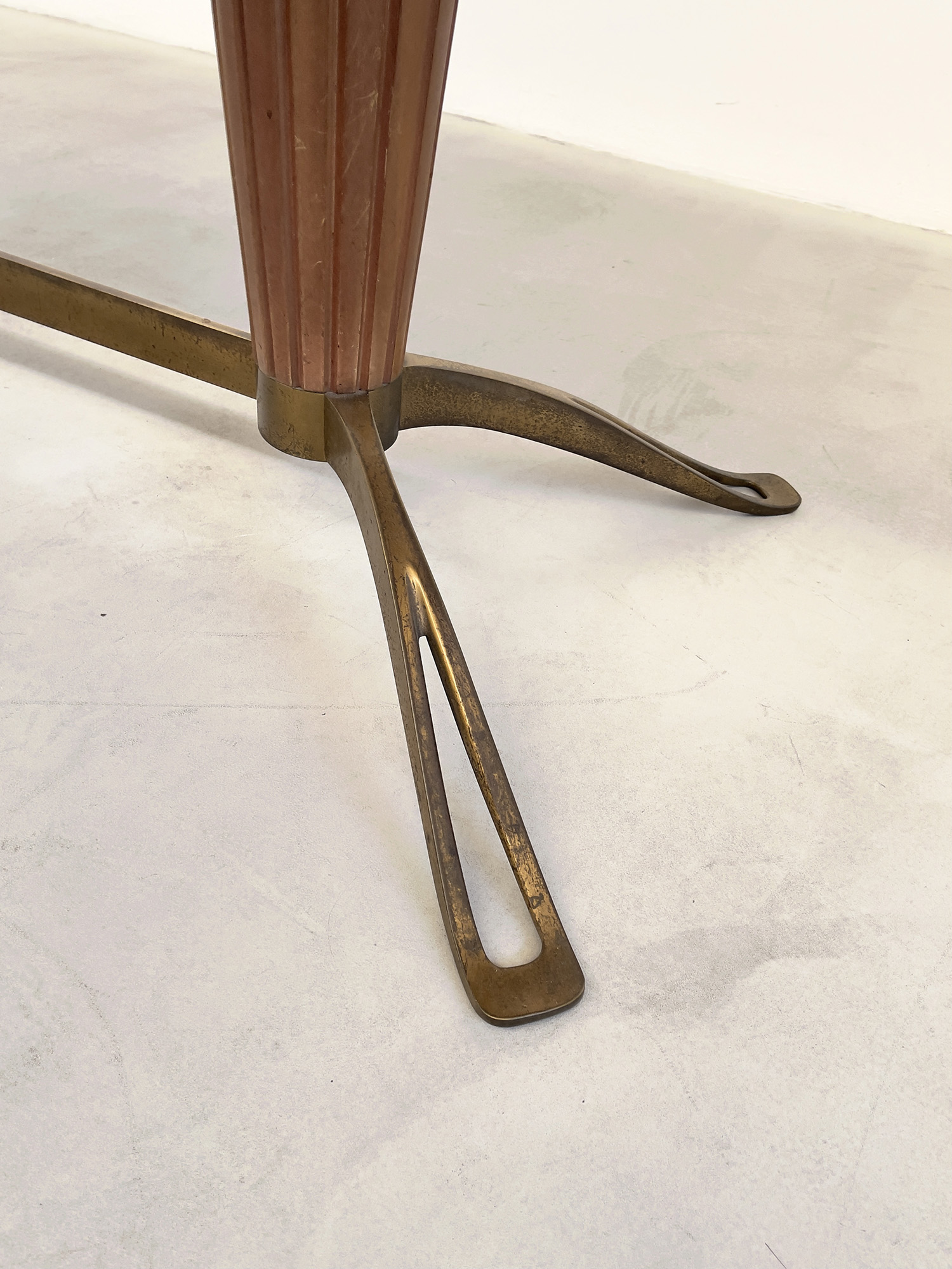 VITTORIO DASSI (1893-1973). Tavolo in legno, ottone e vetro. Anni '50. Mis. Lung. cm. 170 Alt. cm. 81 Prof. cm. 83 ca.