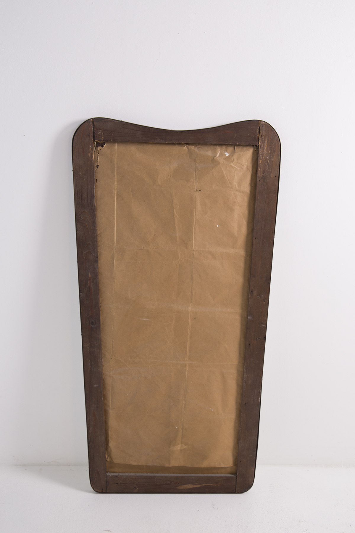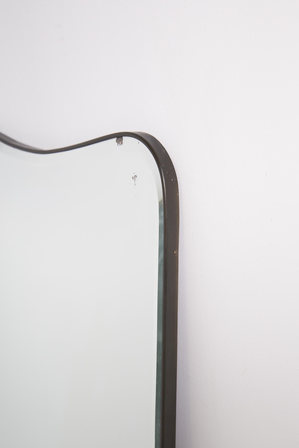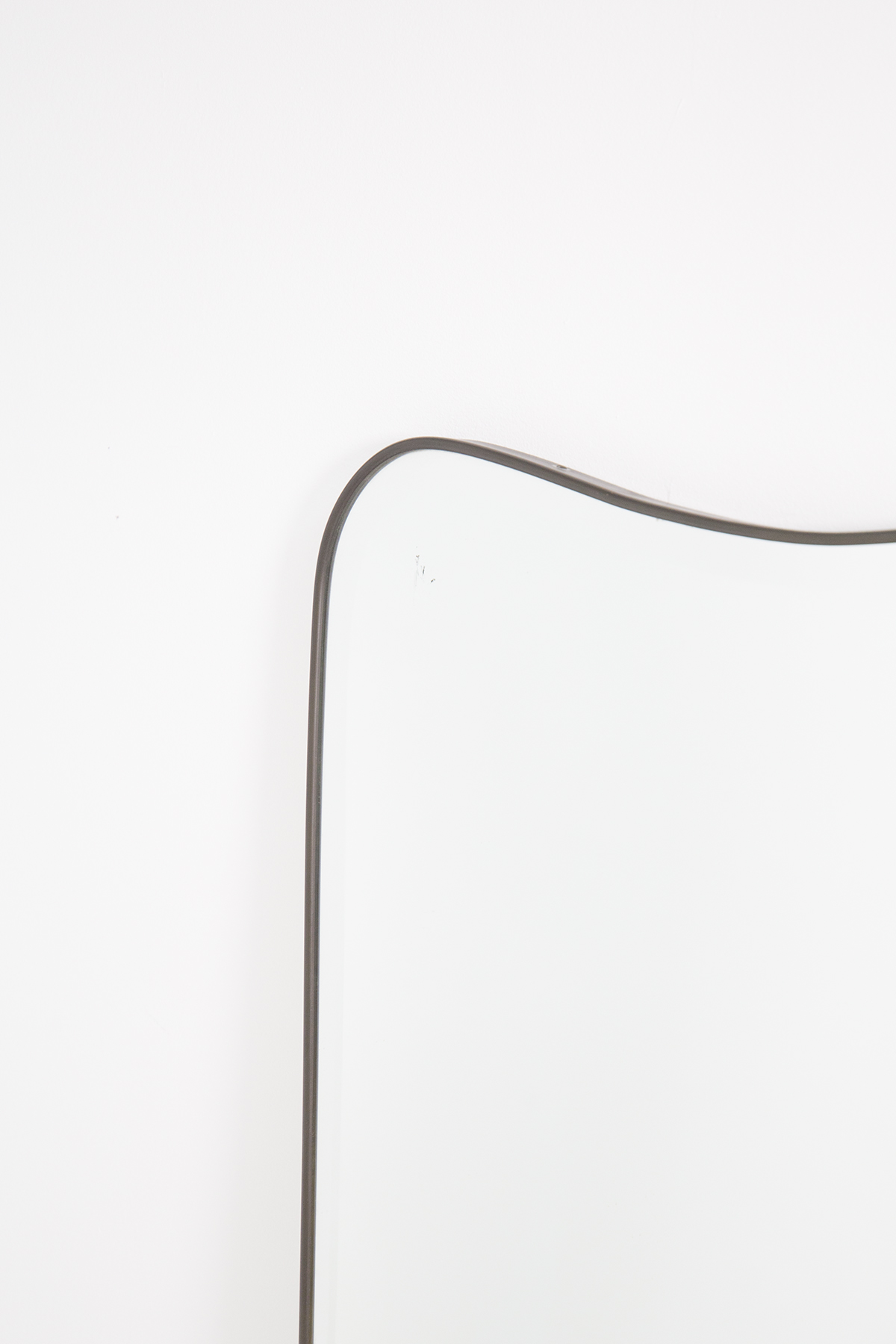 Specchio con profilo in ottone. Manifattura italiana. Anni '50. Mis. Lung. cm. 65 Alt. cm. 128 Prof. cm. 2.5 ca.