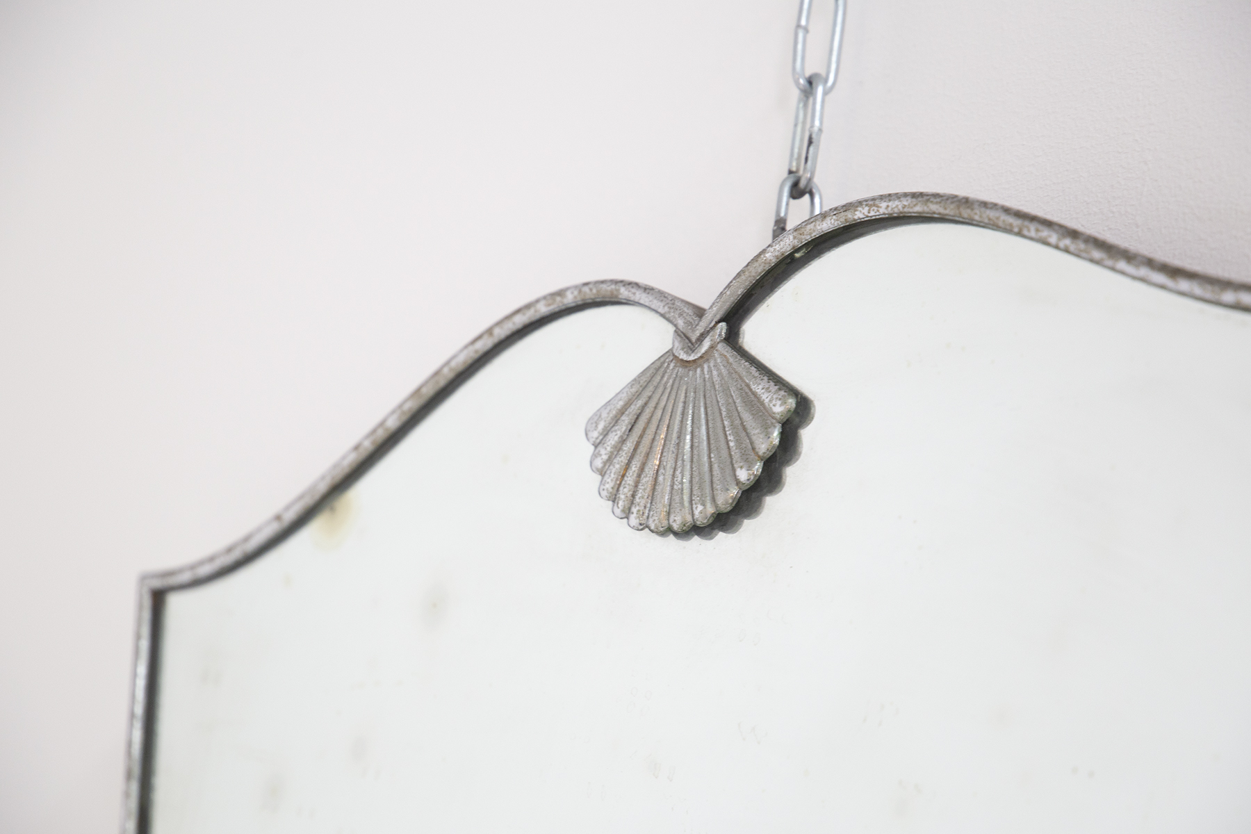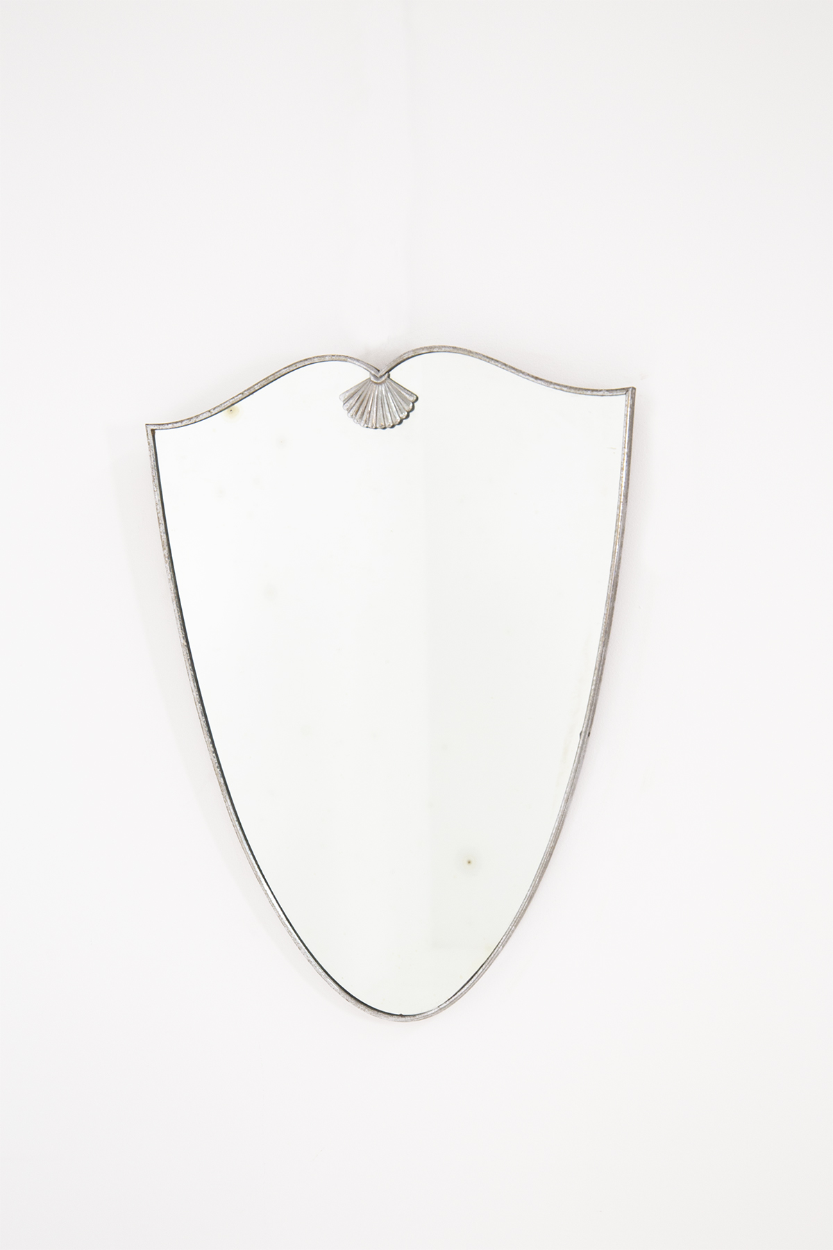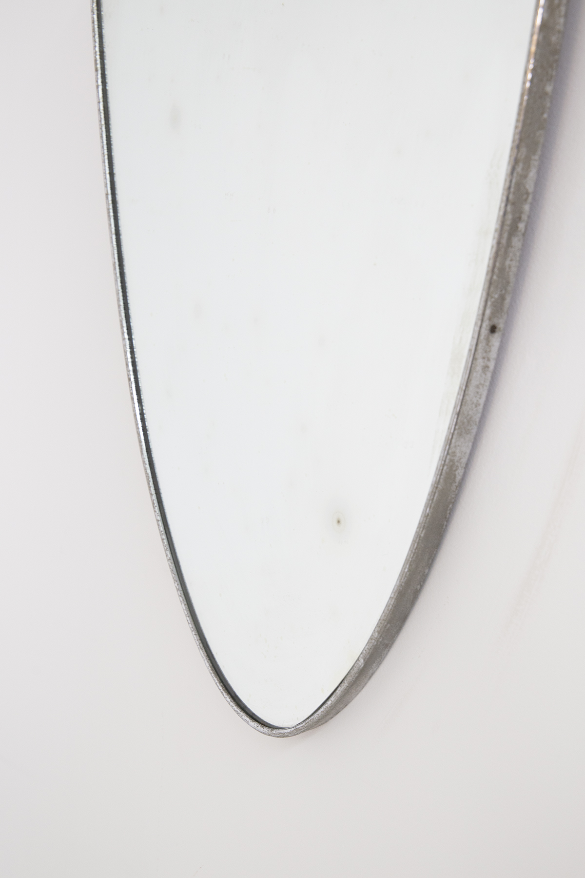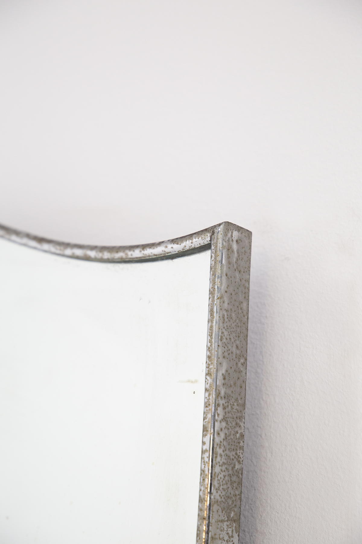 Specchio con profilo in ottone nichelato. Manifattura italiana. Anni '40. Mis. Lung. cm. 57 Alt. cm. 74 Prof. cm. 3 ca.