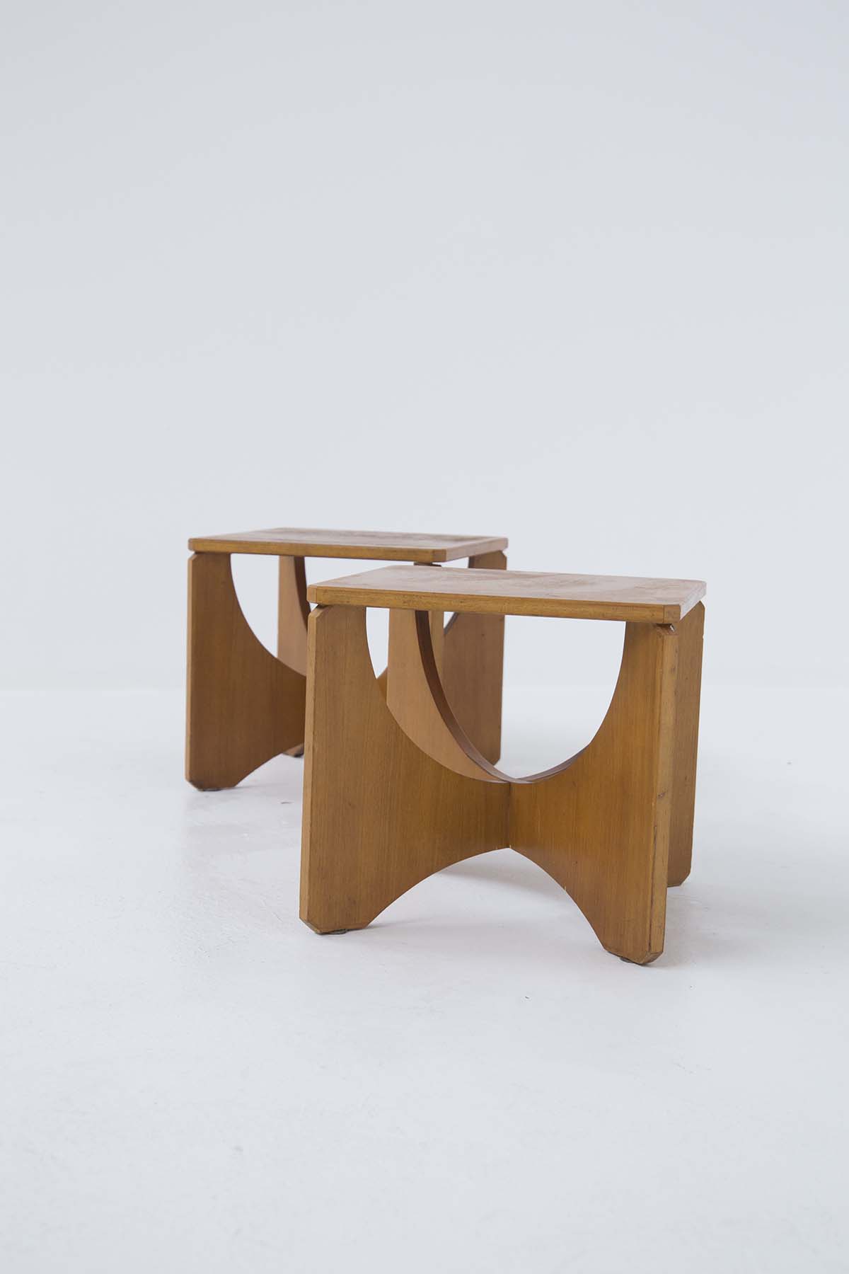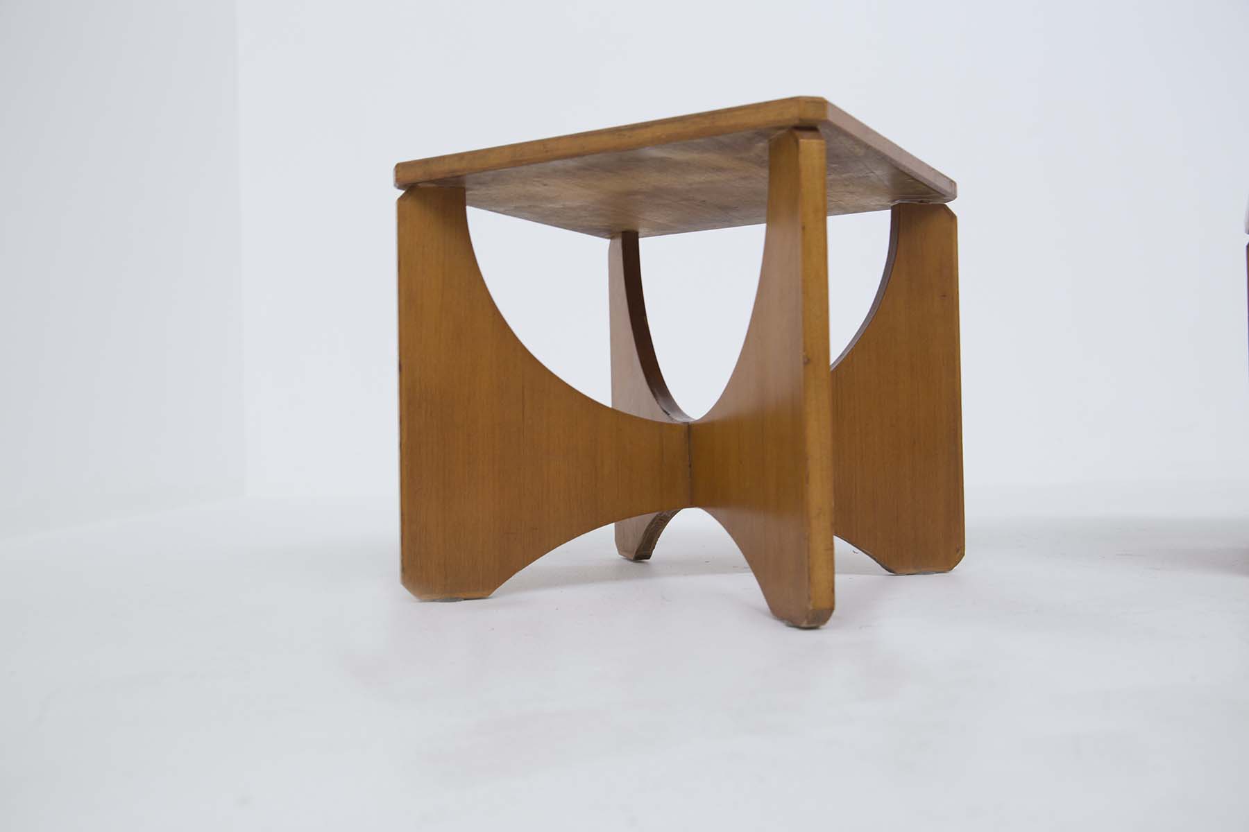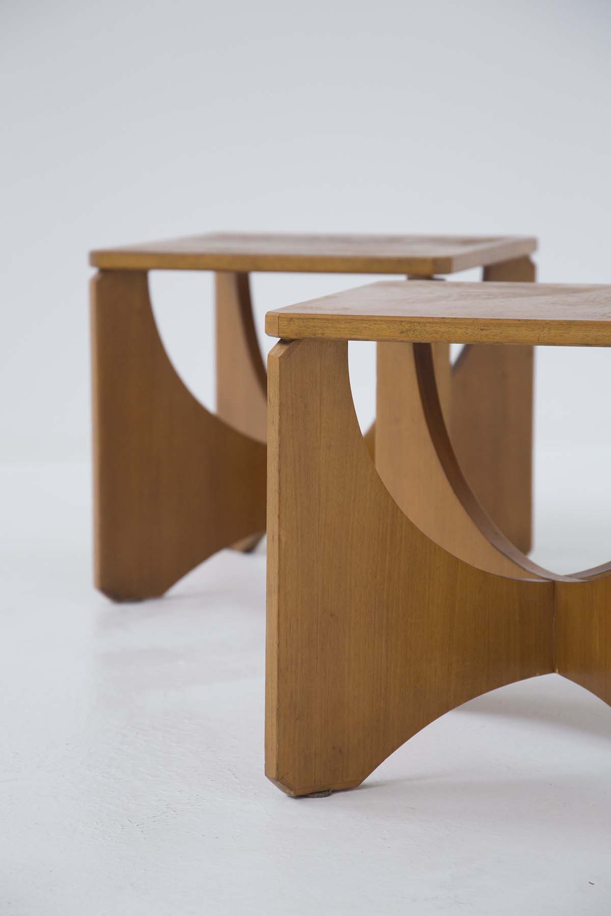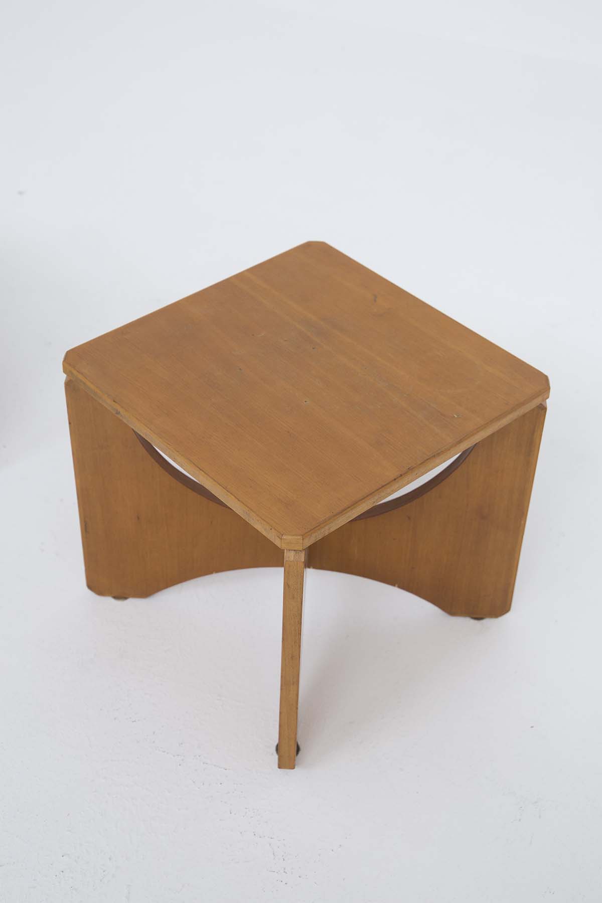 Coppia di tavolini in legno curvo. Produzione HERMAN MILLER. Anni '50. Mis. Lung. cm. 40 Alt. cm. 39 Prof. cm. 40 ca.