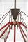 Lampadario in alluminio verniciato rosso, vetro e ottone. Manifattura italiana. Anni '50. Mis. Diam. cm. 21 ca.