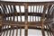 Tavolino in bambù e rattan con piano in vetro. Manifattura italiana. Anni '50. Mis. Alt. cm. 48 Diam. cm. 85 ca.