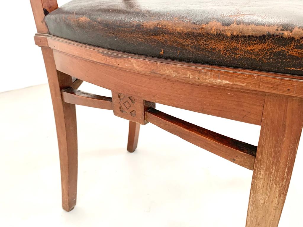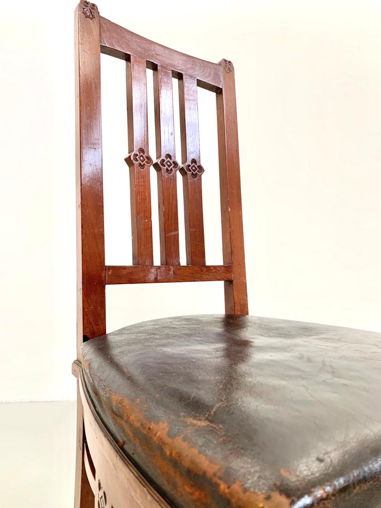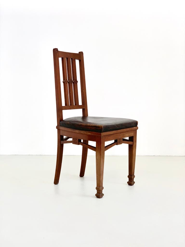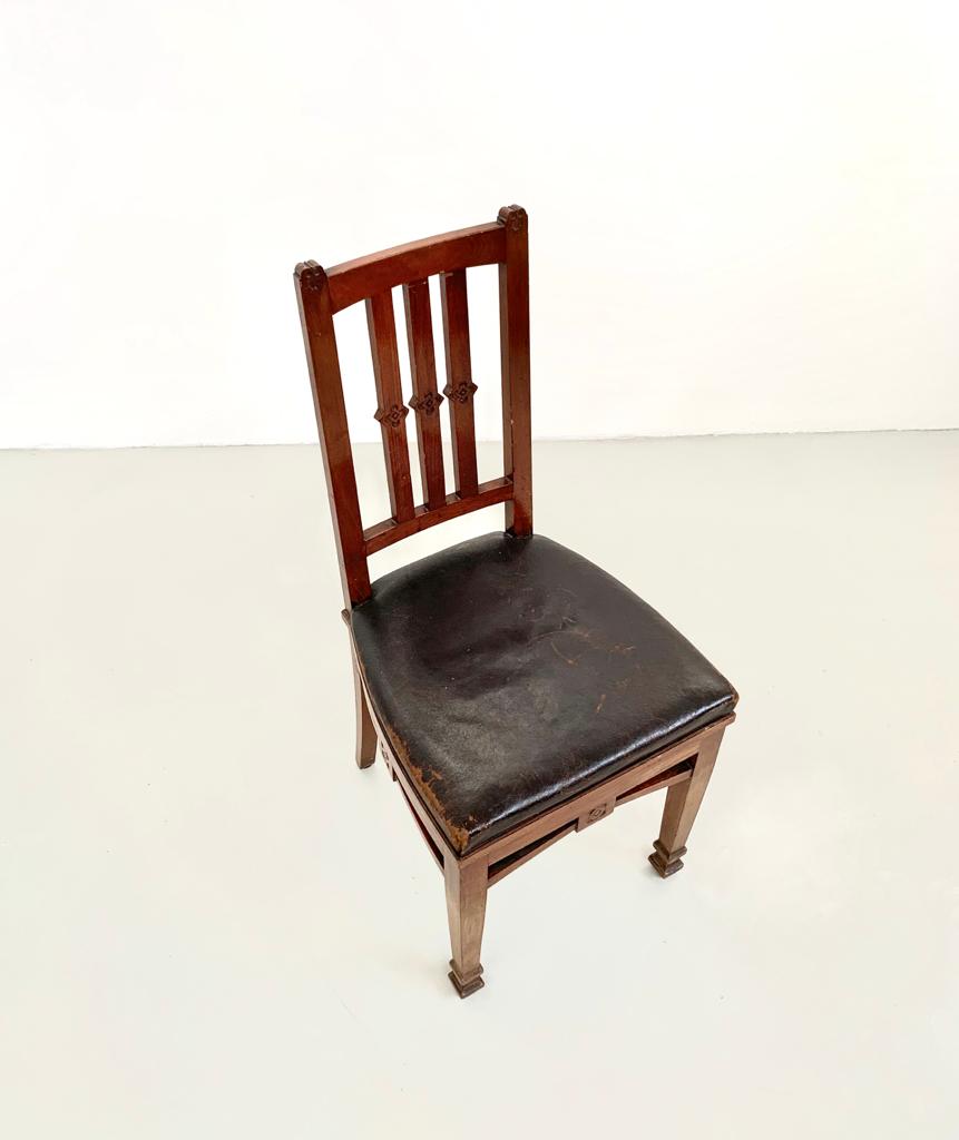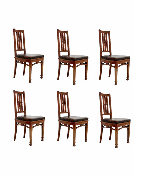 EUGENIO QUARTI (Villa d'Almè, 1867 - Milano, 1926). Sei sedie in legno e pelle. 1910. Mis. Lung. cm. 46 Alt. cm. 88 Prof. cm. 47 ca.