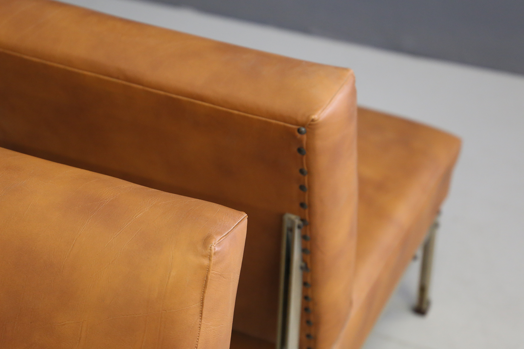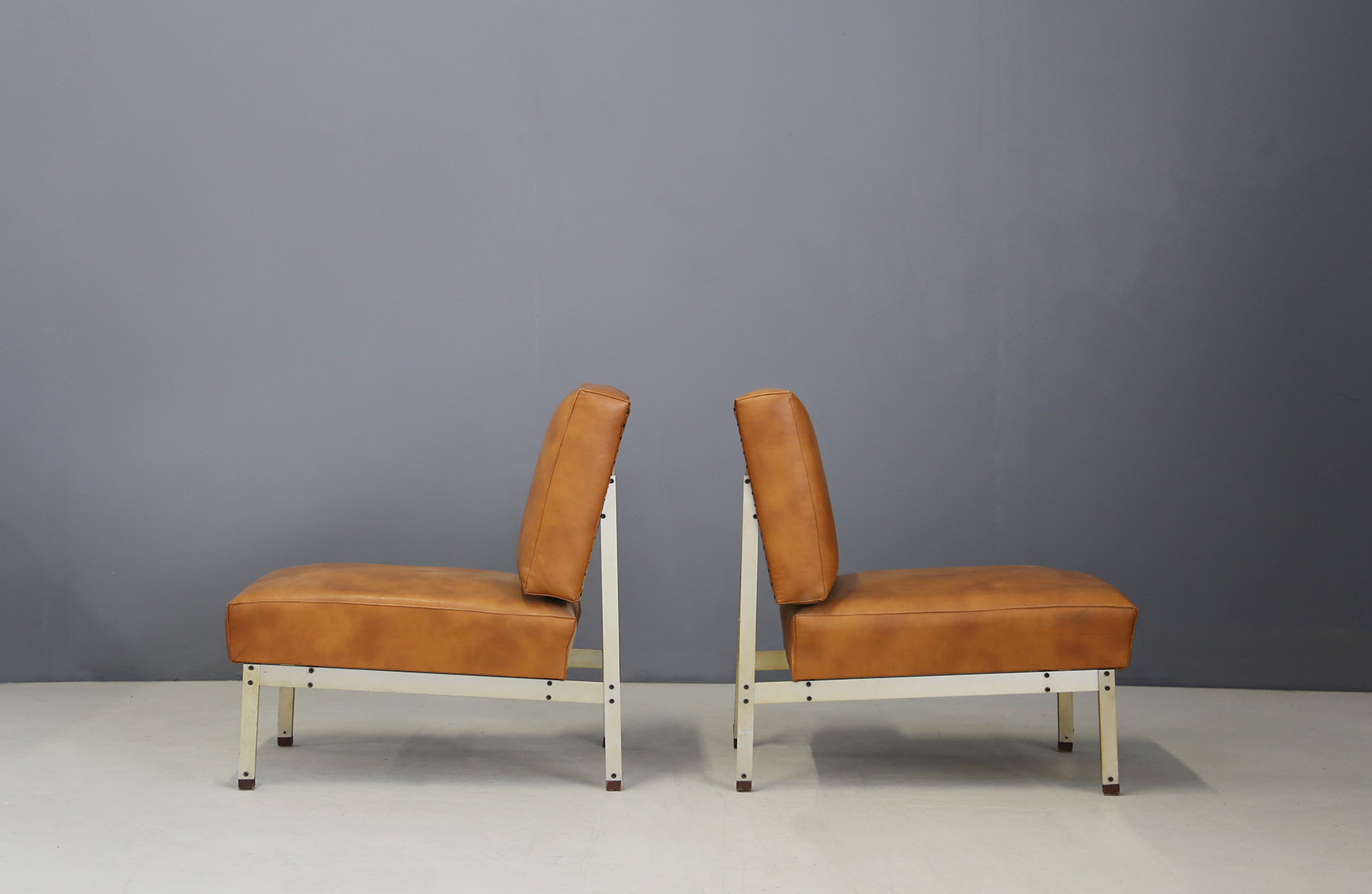 Lot 546 | Two leather armchairs. Italy. 1960s