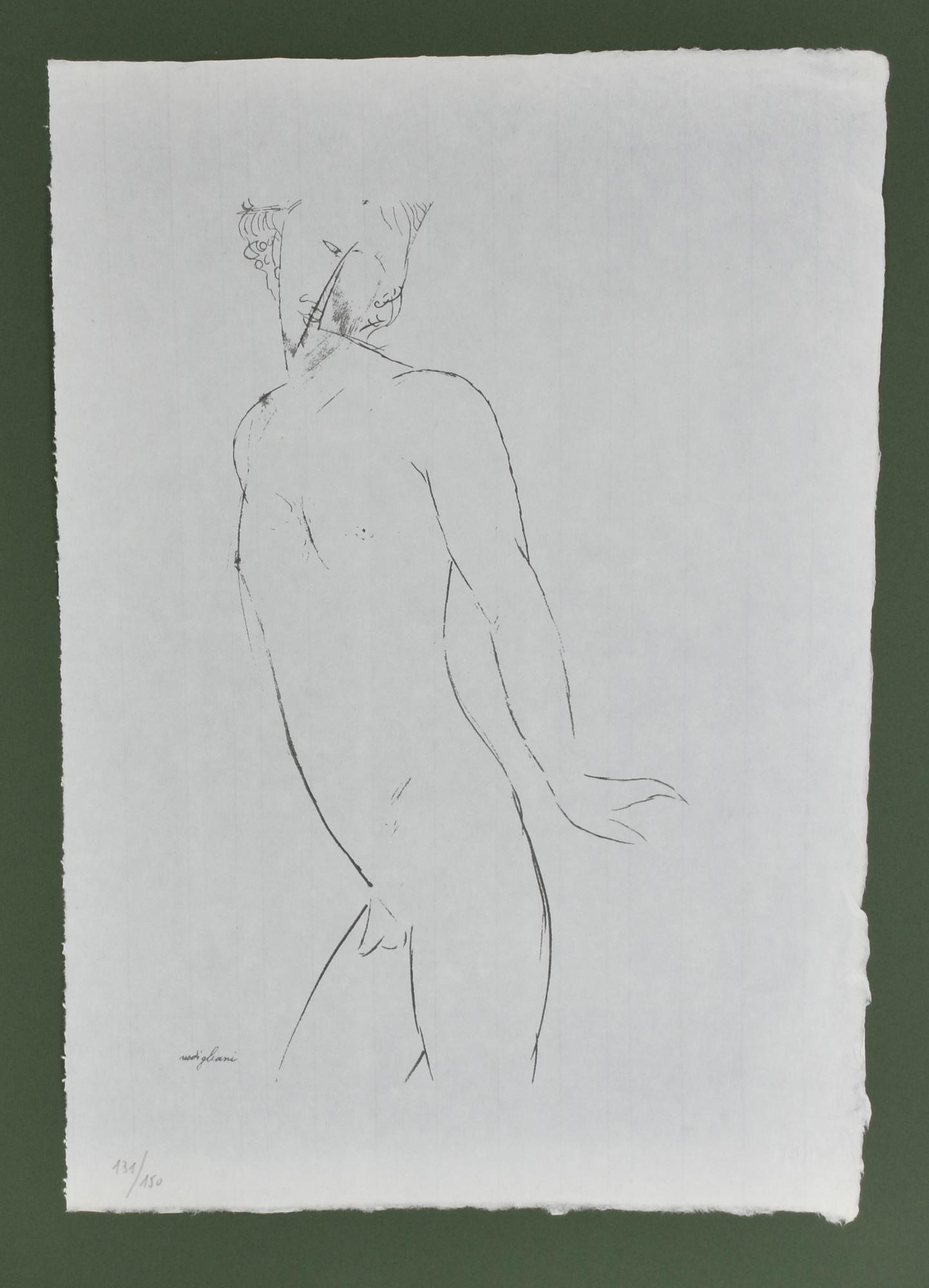 Amedeo Modigliani NUDO VIRILE litografia su carta di riso (d'apres), cm...