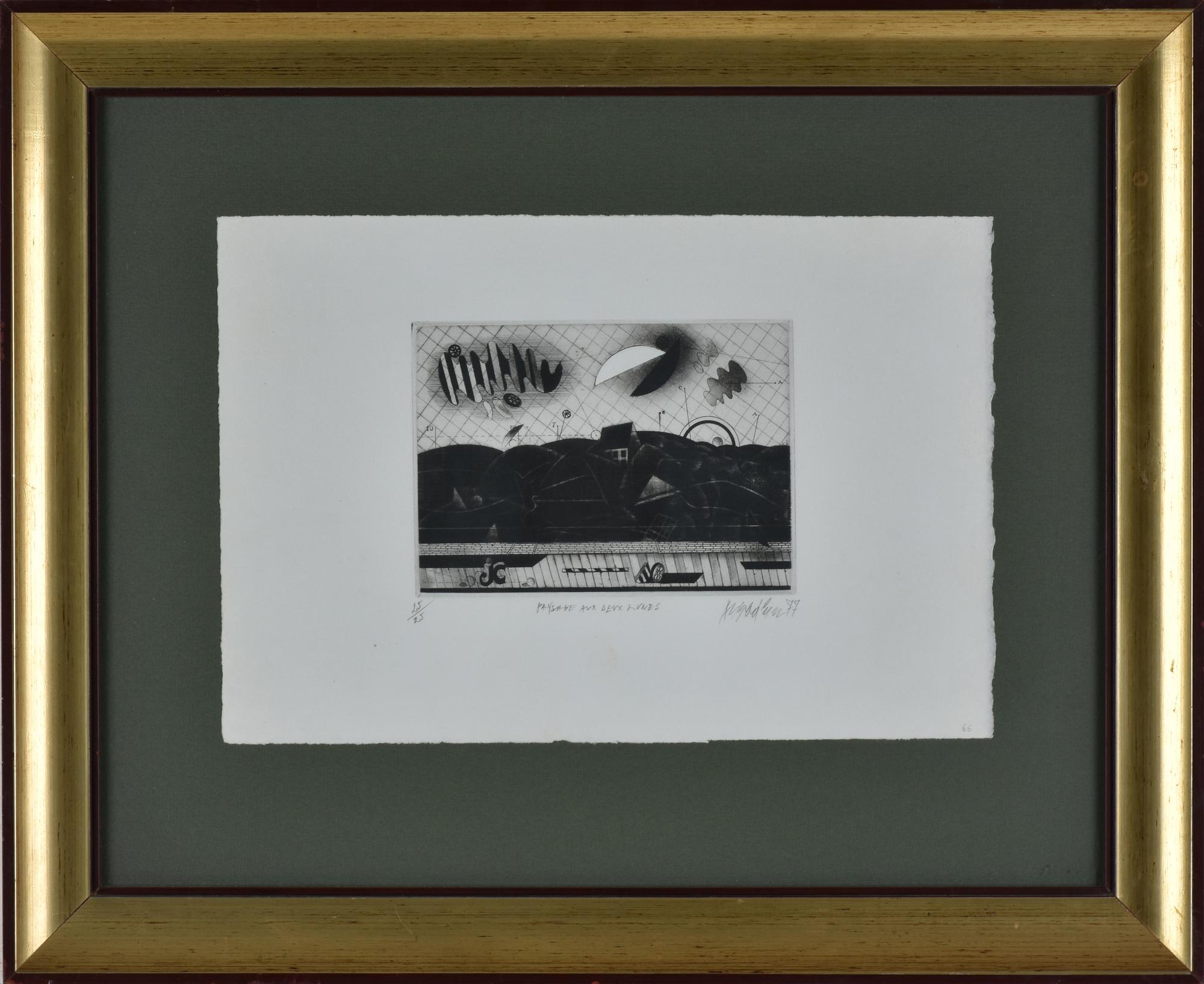 Assadour PAYSAGE AUX DEUX LUNES bulino e maniera nera su carta, battuta cm...