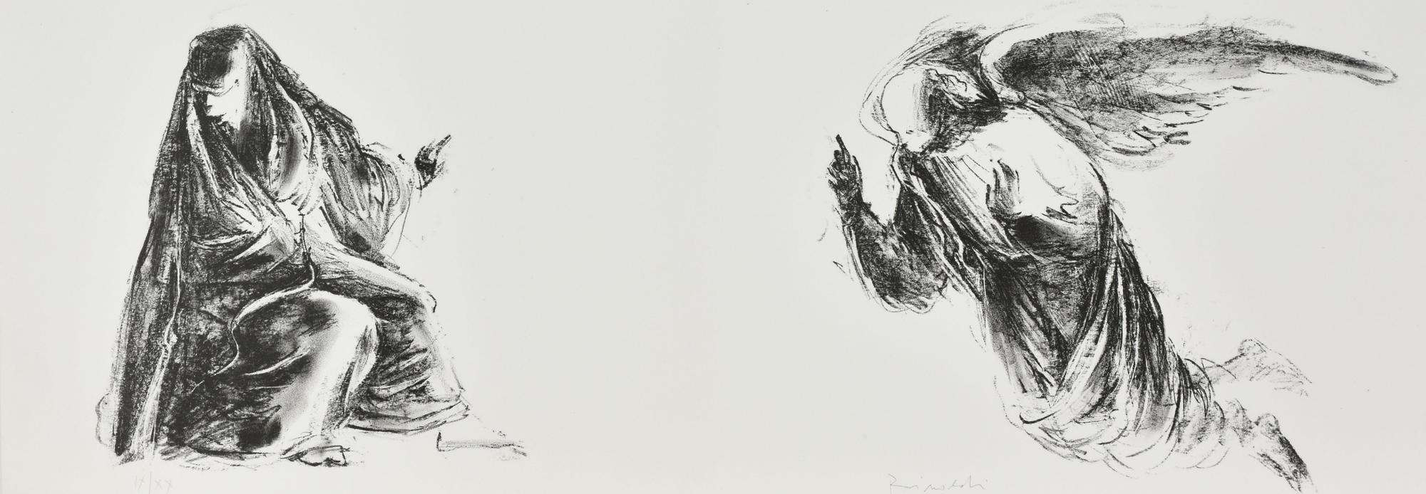 Ignoto ANNUNCIAZIONE litografia, cm 22,5x63,5; es. IX/XX firmato e numerato