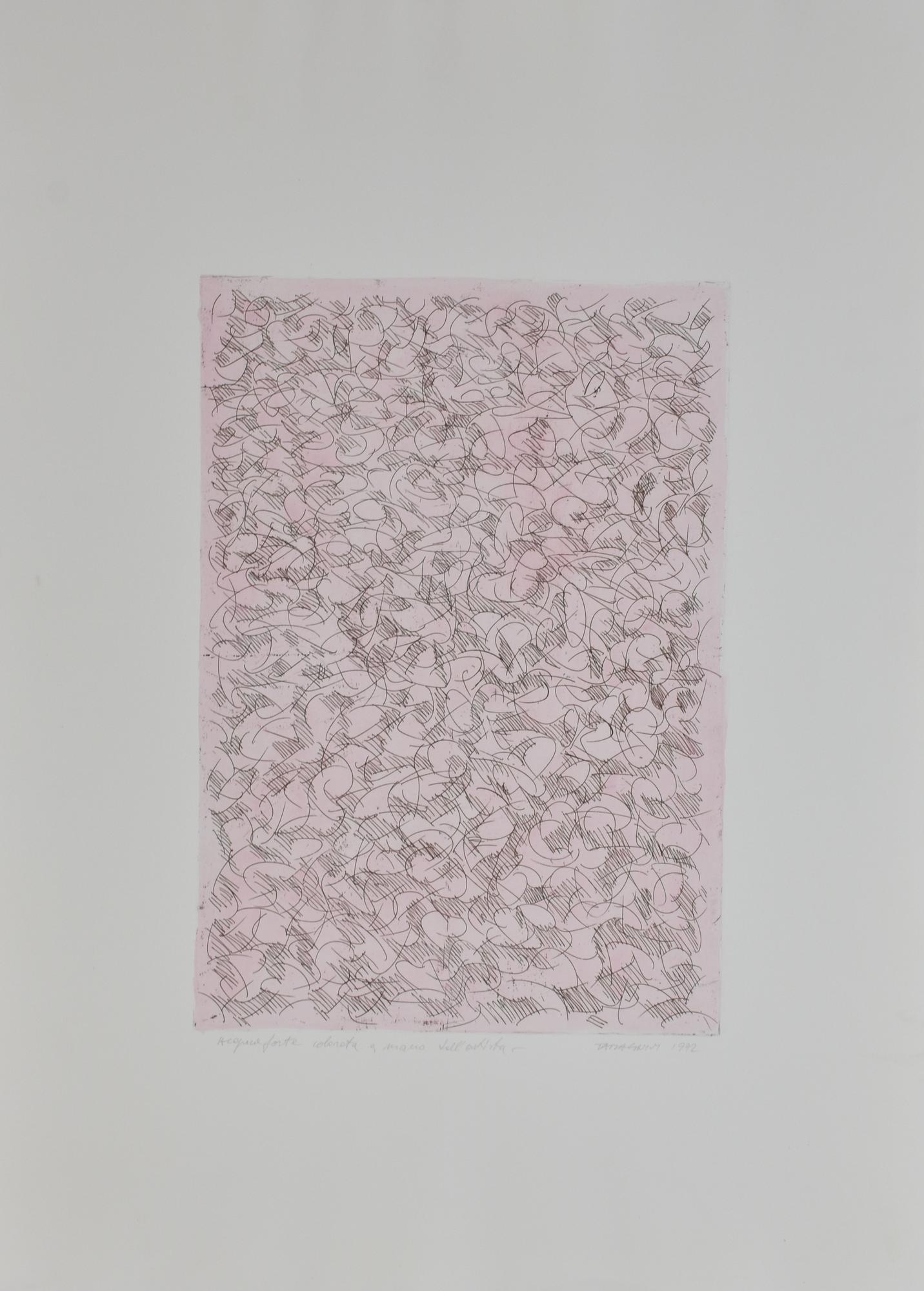 acquaforte colorata a mano su carta, foglio cm 70x50, battuta cm 39x27,5; es. senza tiratura