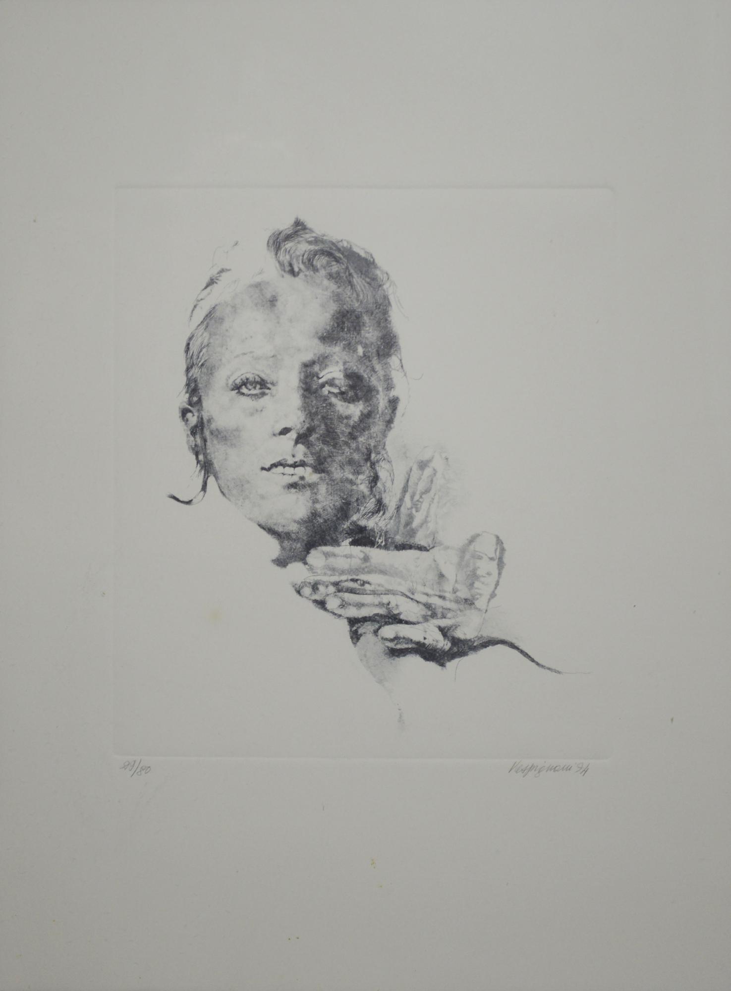 Renzo Vespignani VOLTO acquaforte acquatinta su carta, battuta cm 31,5x27,2,...