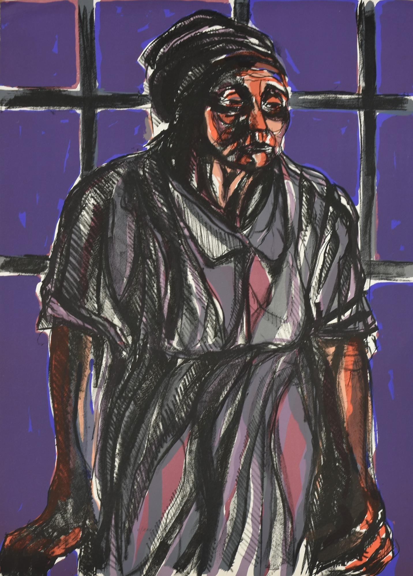 Saverio Terruso ANZIANA litografia su carta, cm 70x50; es. II/XXV firma e...
