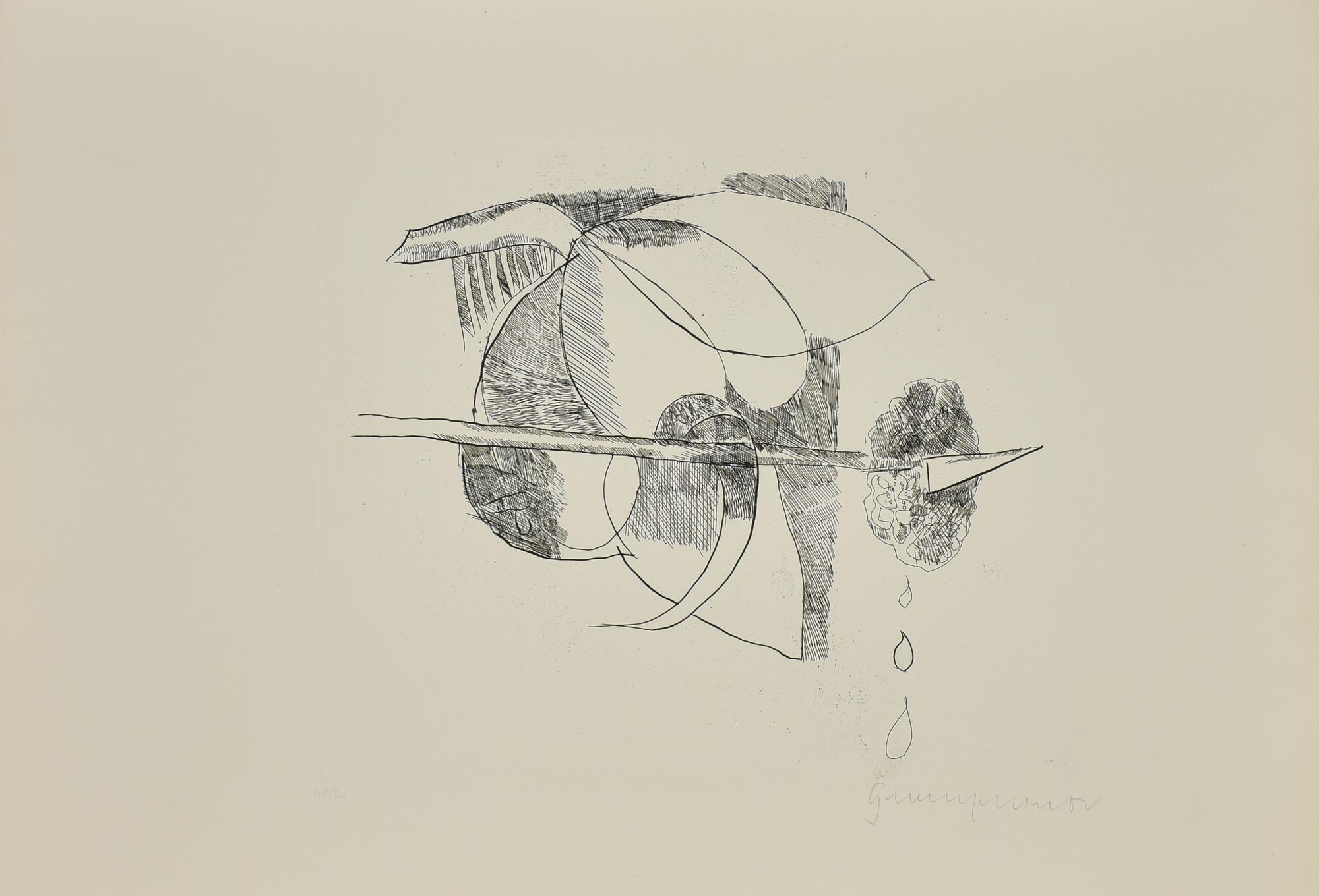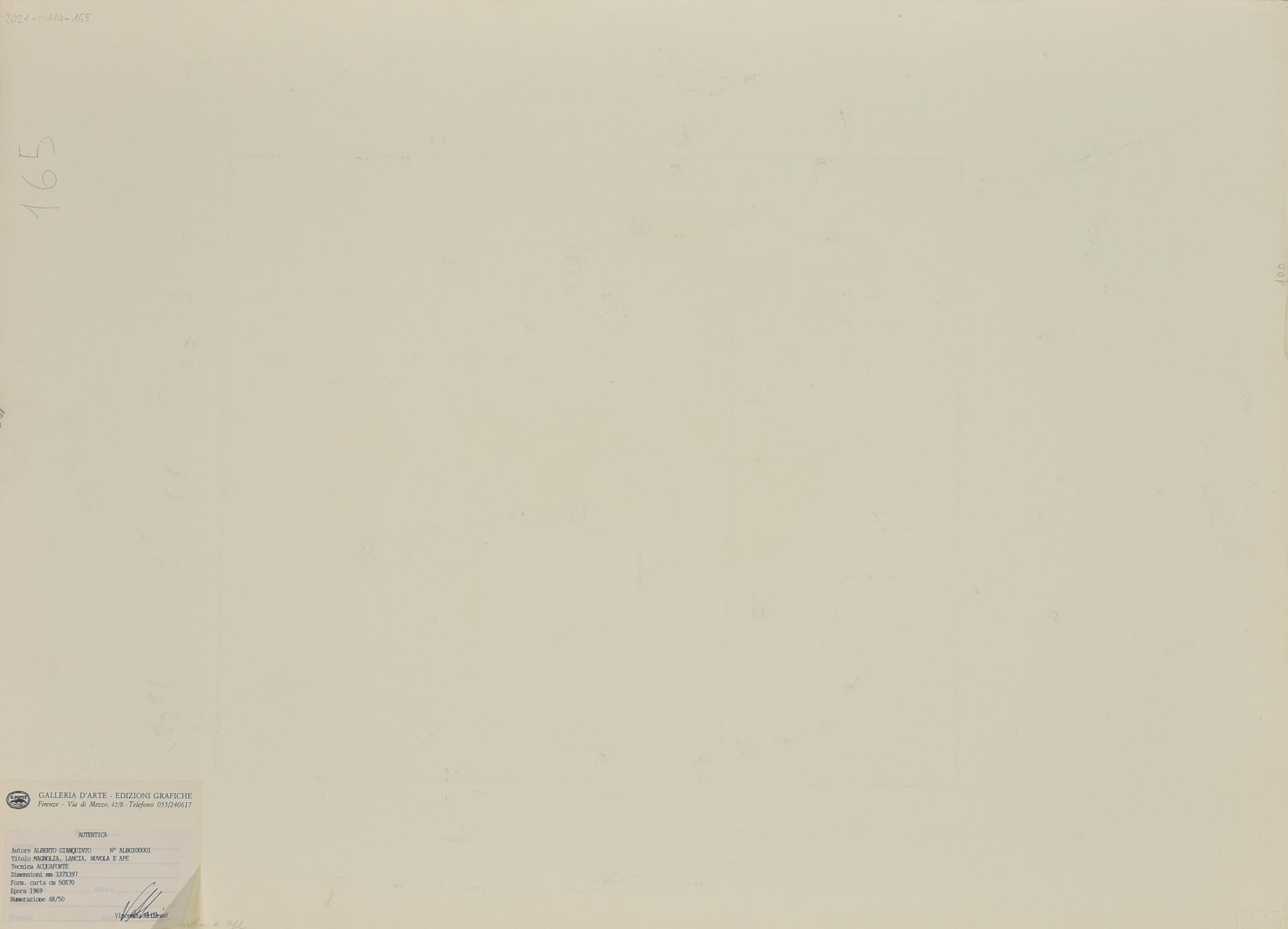 Alberto Gianquinto MAGNOLIA LANCIA NUVOLA E APE Acquaforte, mm 337x397, su...