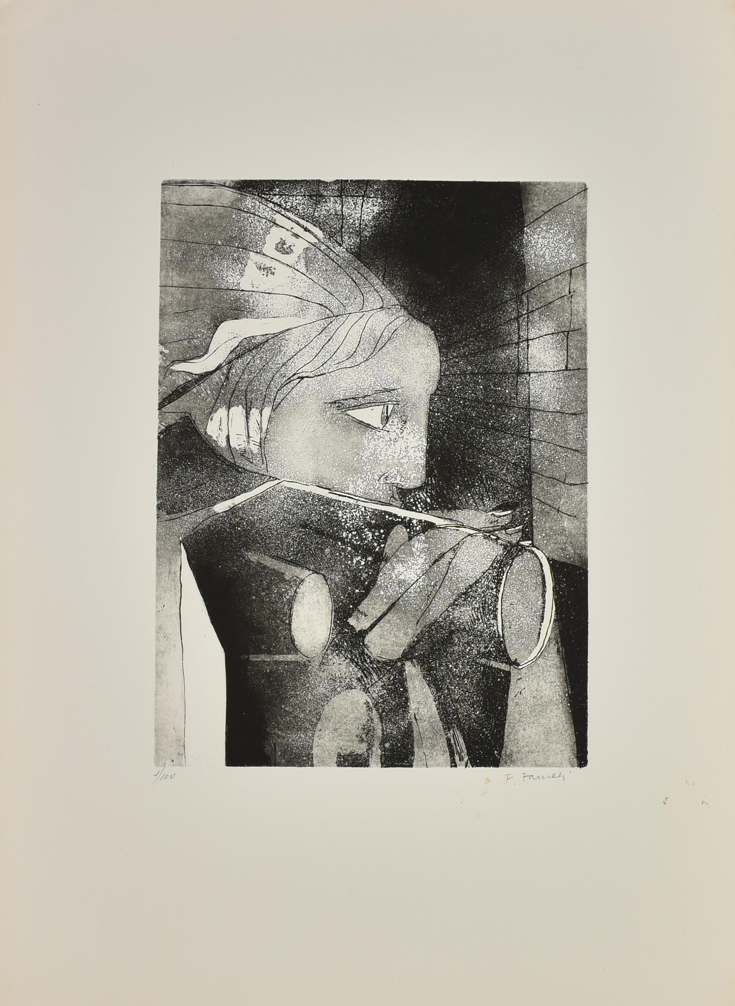 Fernando Farulli LA DONNA CON LA TORCIA Acquaforte acquatinta, mm 395x288, su...