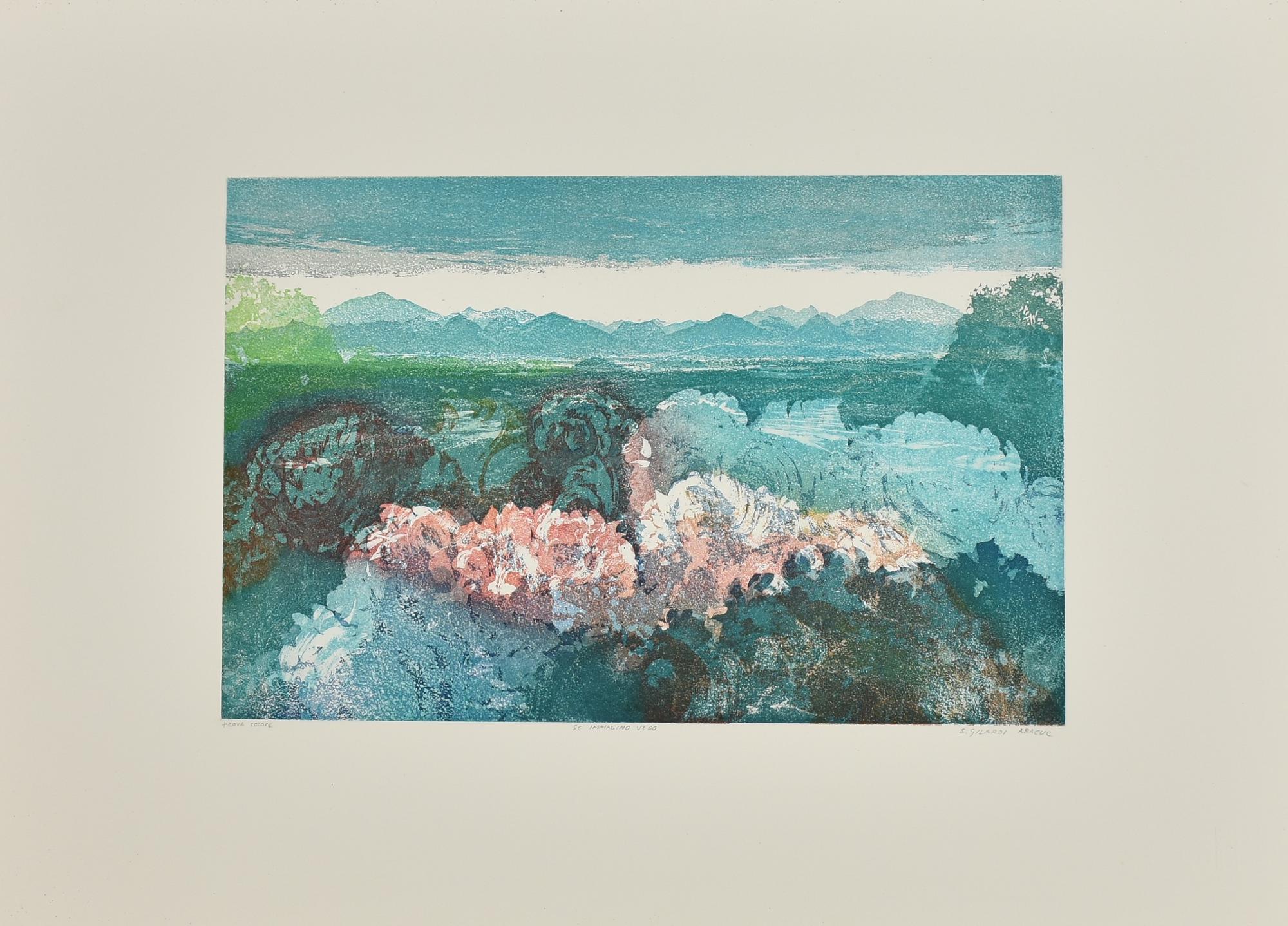 Abacuc SE IMMAGINO VEDO Acquatinta a colori, mm 295x435, su foglio cm...