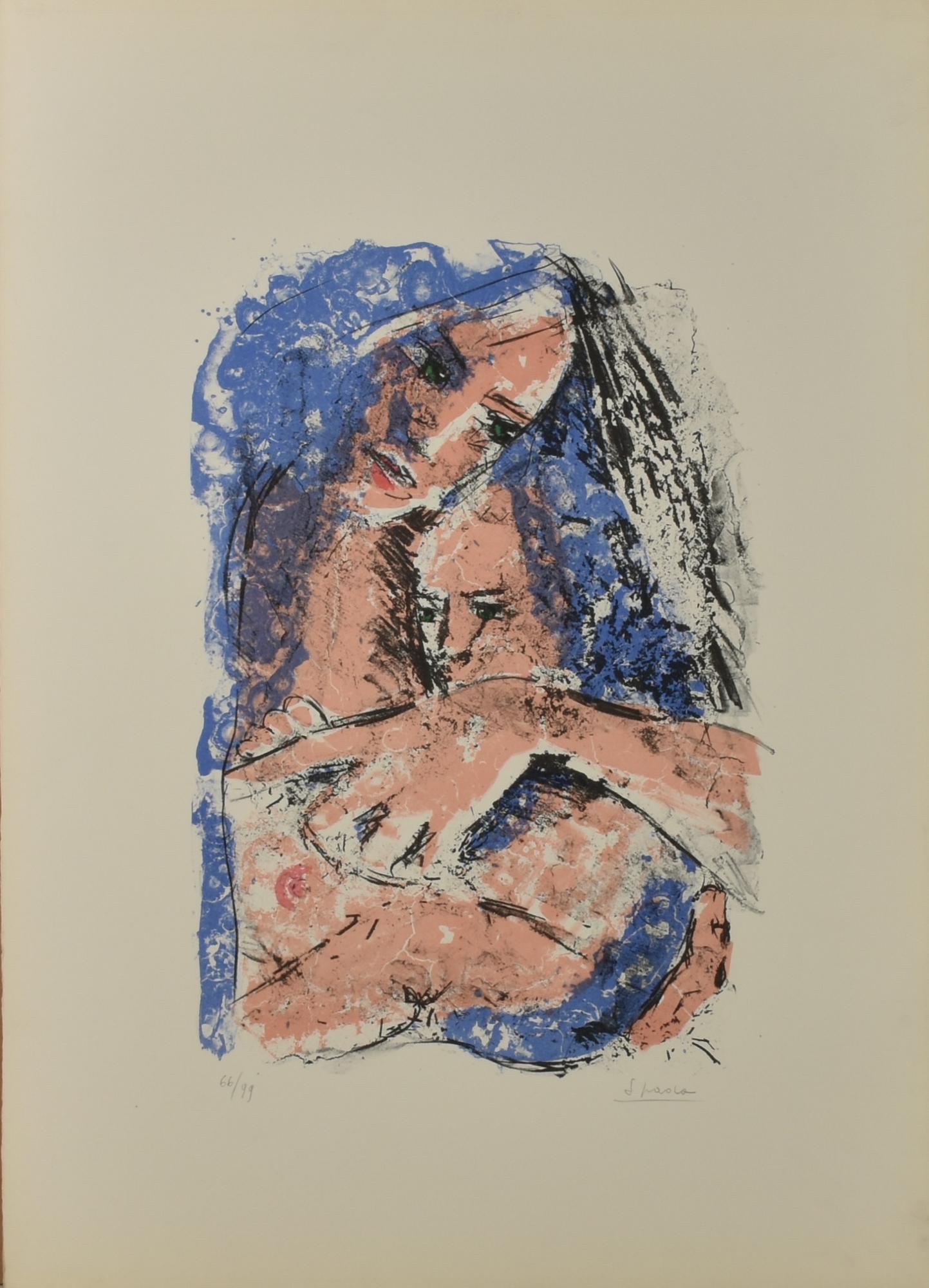Paolo Spada L'ABBRACCIO litografia su carta, 70x90, es.66/99 firma e titolo...