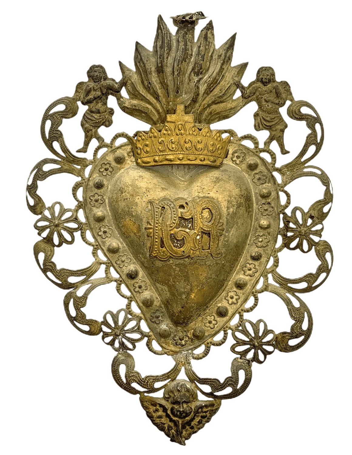 N 3 Ex voto in argento a forma di cuore con puttini e simboli della passione. 1) H cm 23 2) H cm 17 3) H cm 20. N 3 Ex voto in argento a forma di cuore con puttini e simboli della passione. 1) H cm 23 2) H cm 17 3) H cm 20