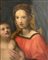 Dipinto ad olio su tavola raffigurante Madonna con bambino.. Cm 48x39, in cornice cm 58x49 XVII secolo.