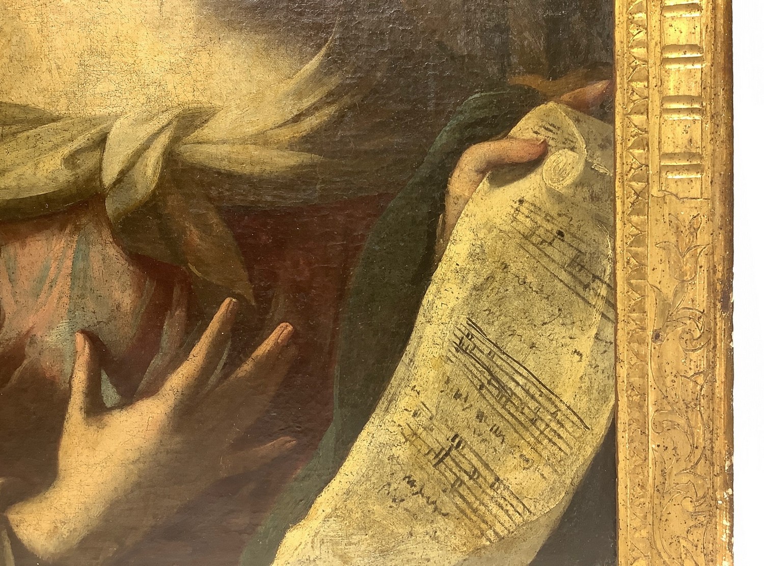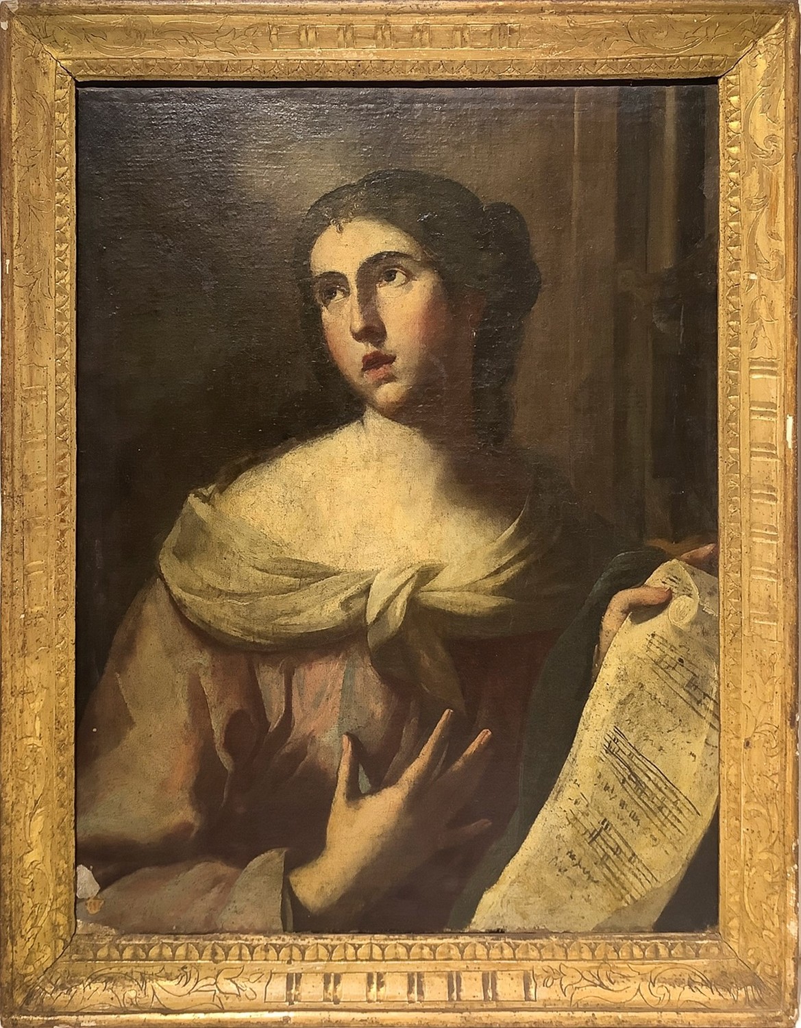 Allegoria della musica, Santa Cecilia, cerchia del Furini . In cornice in legno dorato Dipinto ad olio su tela 75x62 cm, in cornice 84x73,5 cm fine XVII secolo
