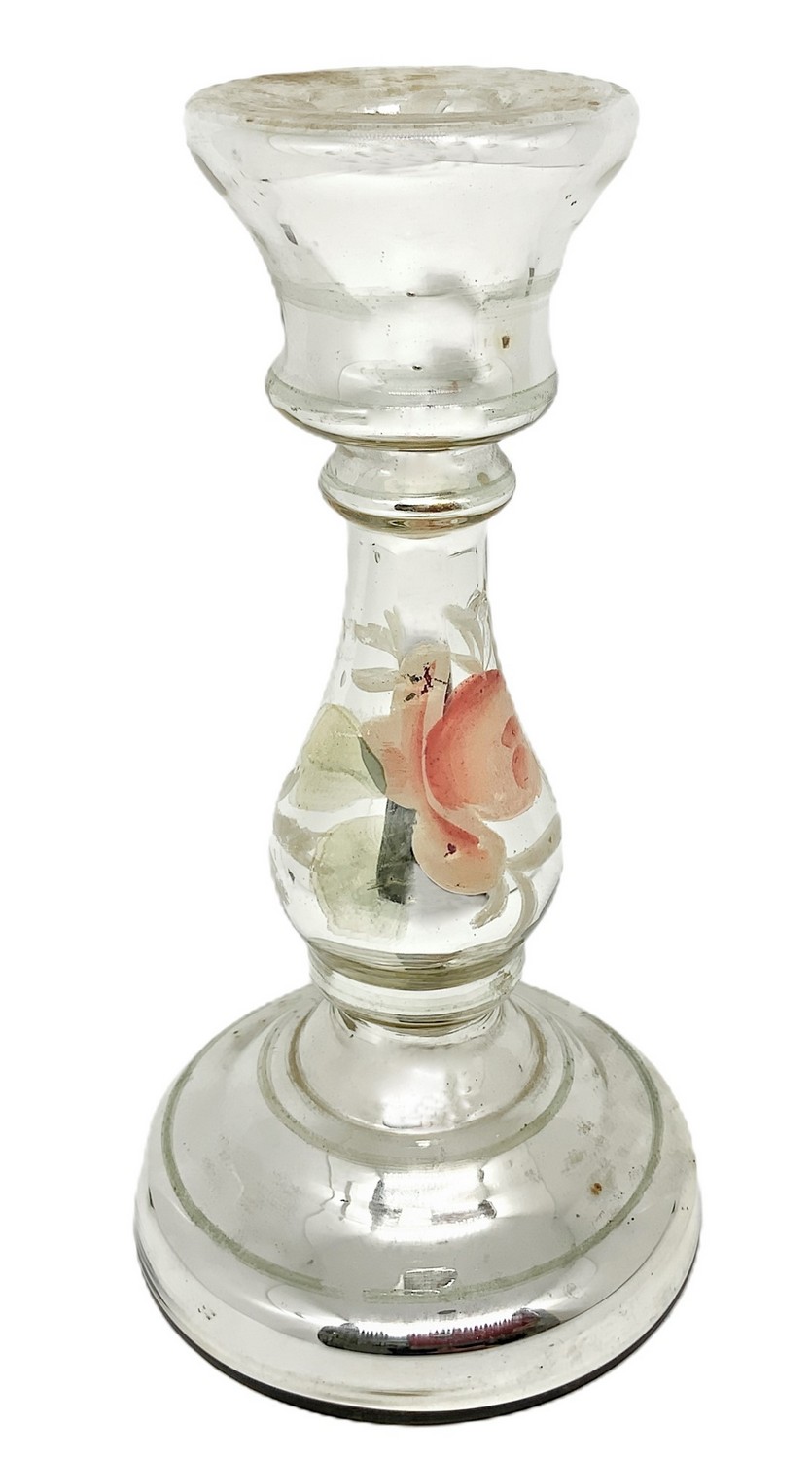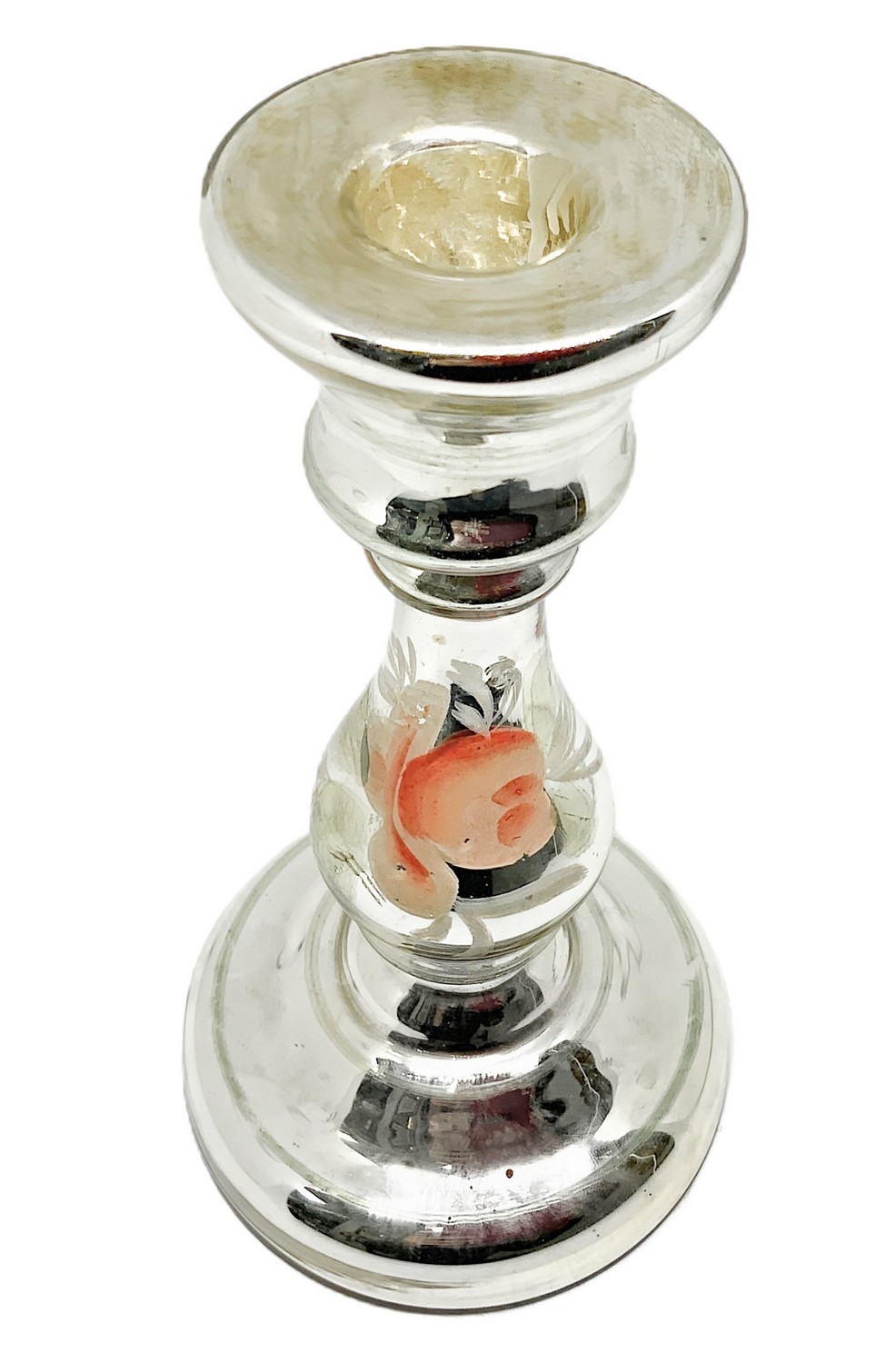 Candelabro in vetro di Murano argentato al mercurio.. H cm 19 XIX secolo.
