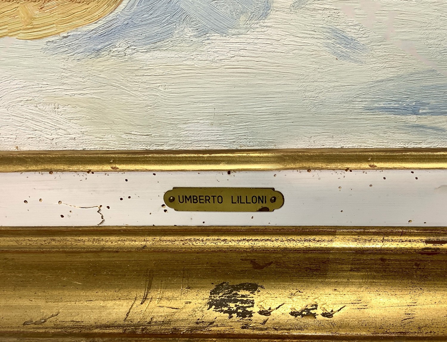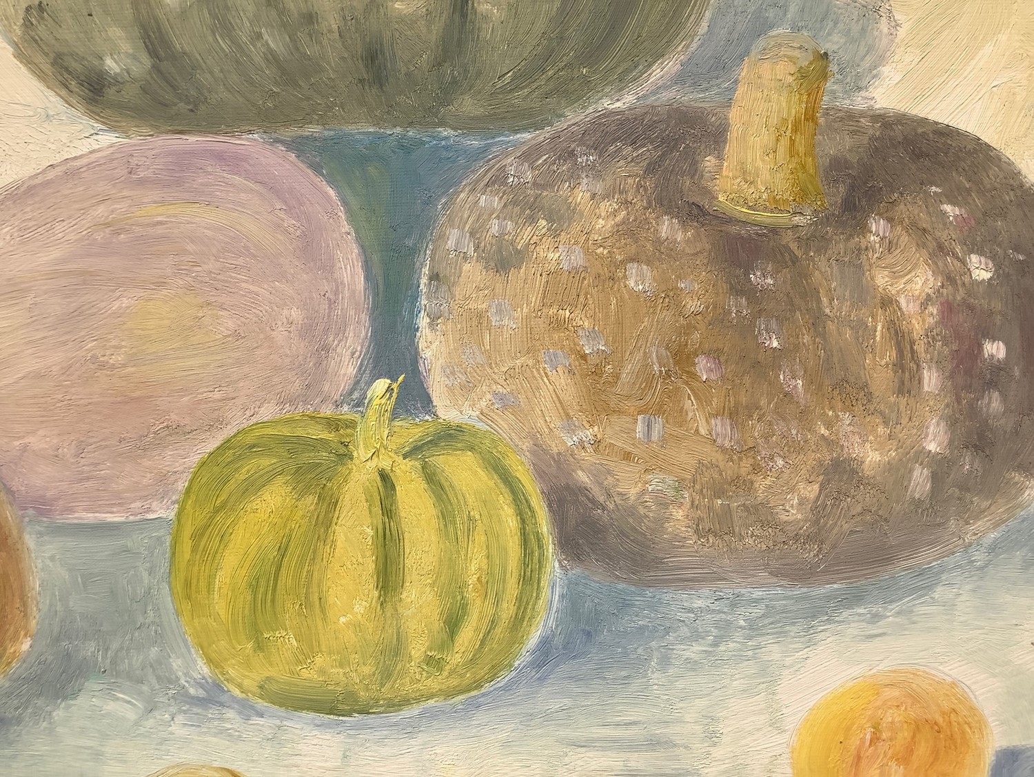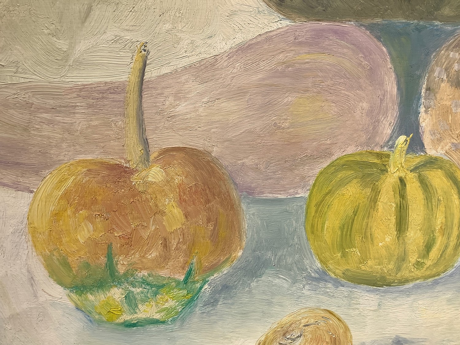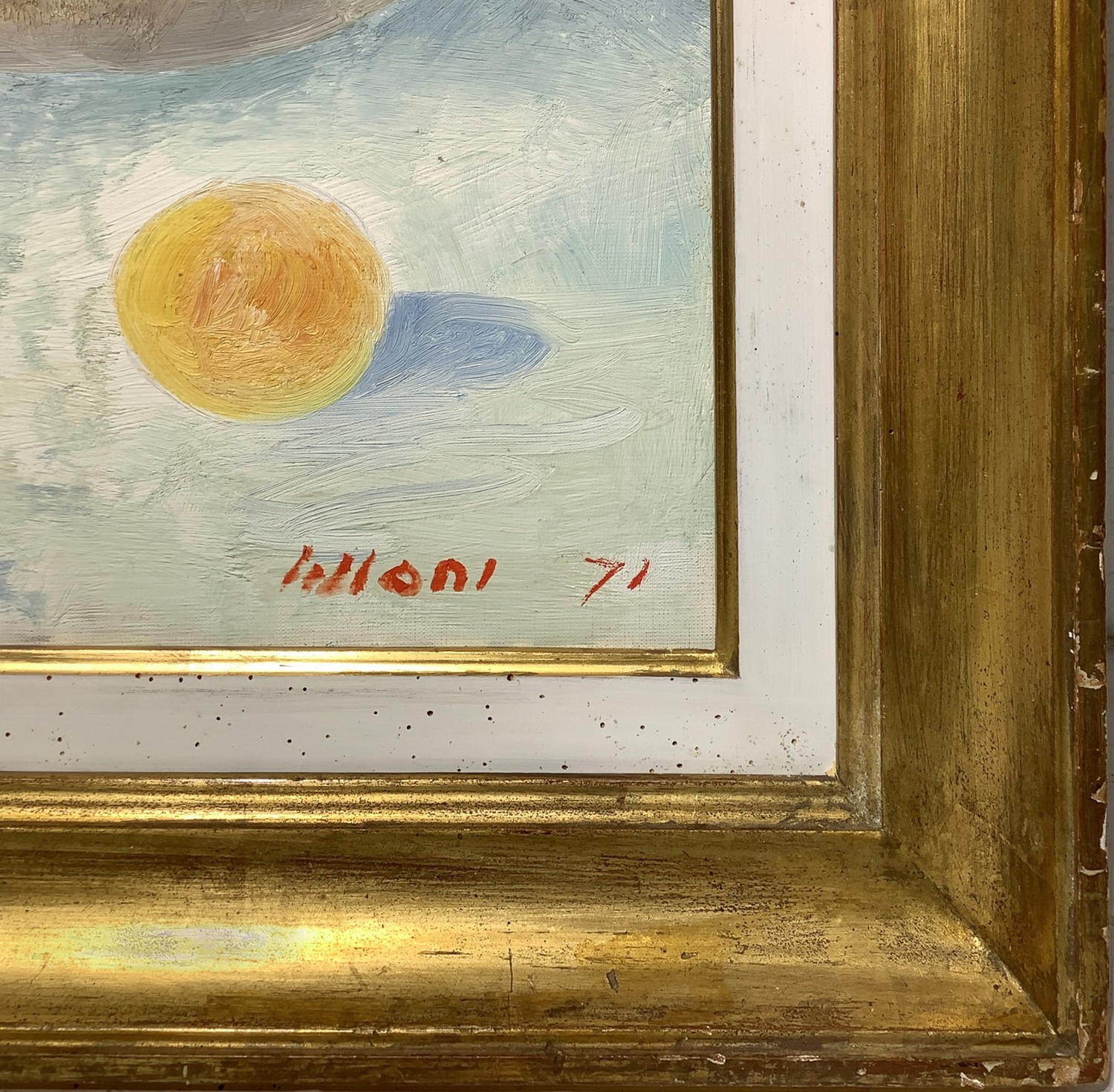 Natura morta di zucche.. Firmato in basso a detra Lilloni '71. Timbro dell'archivio sul retro, Archivio Fotografico Generale N. 90 Dipinto ad olio su tela 50x65 cm, in cornice di legno dorata 70x85 cm Umberto Lilloni Milano 1898-Milano 1980