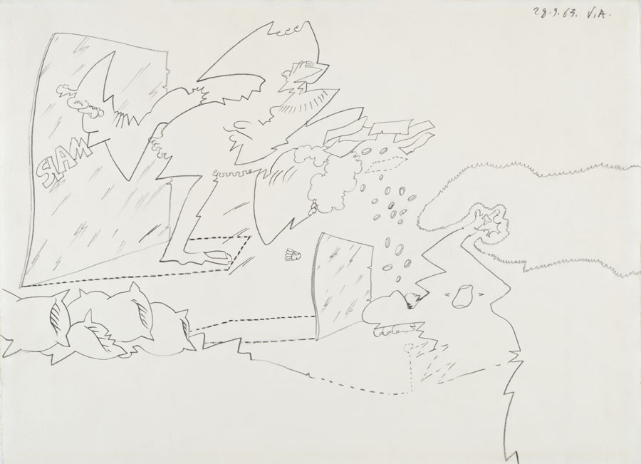 Valerio Adami , Bologna 1935 , "Slam" 1963 matita su cartoncino, cm 50,6x69,5 Firmato con le iniziali e datato 28.9.63 in alto a destra