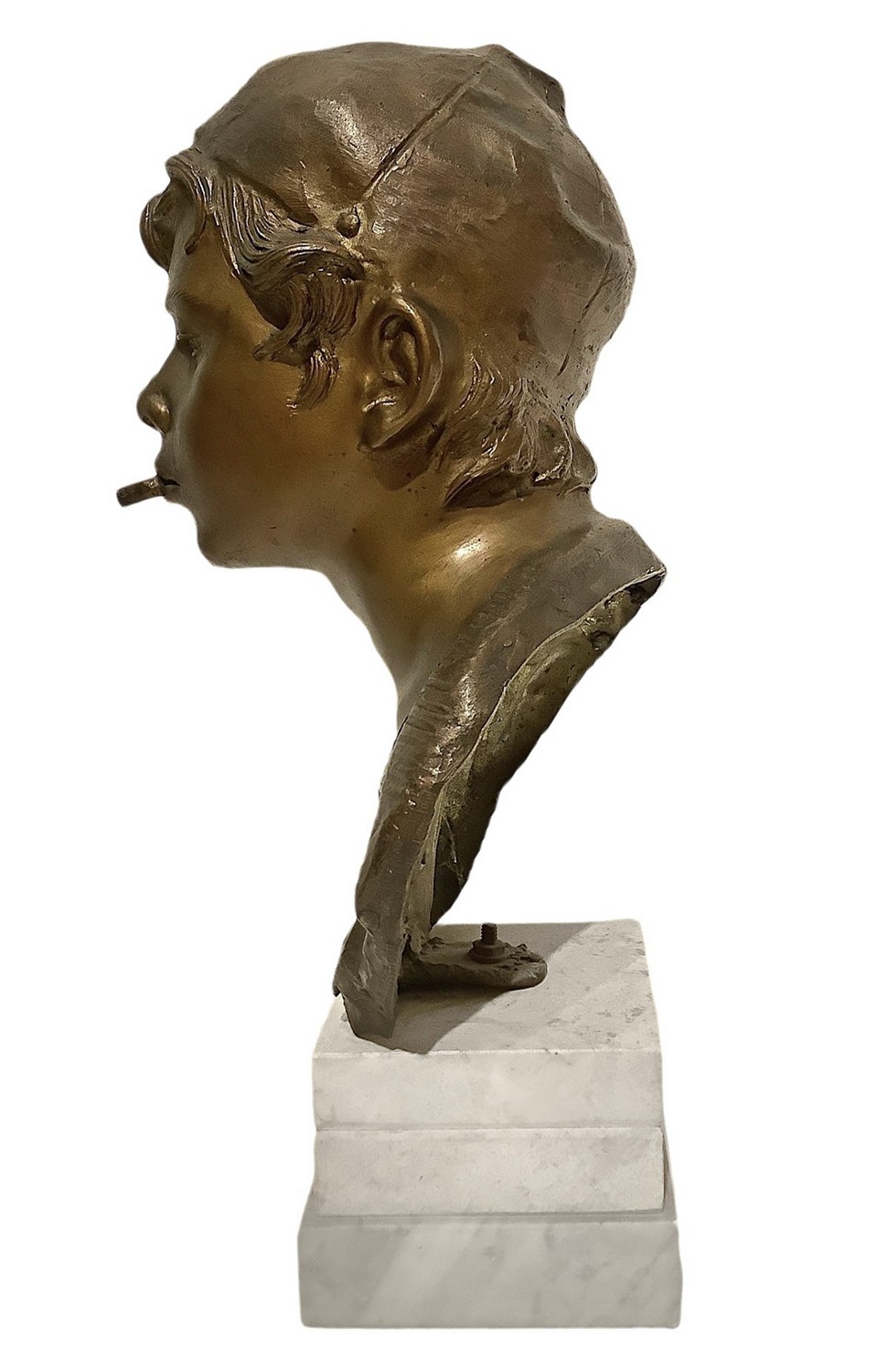 Bronzo con base marmo H 46x20x18 cm De Martino Napoli 1870-Napoli 1935