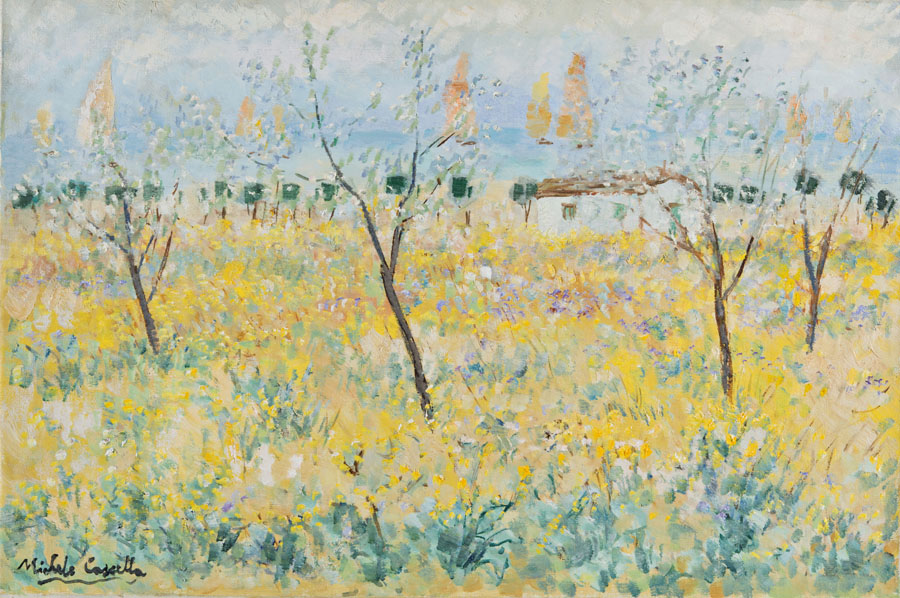 Michele Cascella , Ortona 1892 , Milano 1989 "Paesaggio abruzzese" 1974 olio su tela, cm 40x60 Firmato in basso a sinistra Parere verbale di autenticità rilasciato dall'Archivio Cascella a cura della Galleria Torcular, Milano