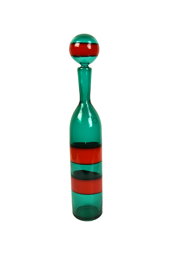 BOTTIGLIA A FASCE CON TAPPO vetro soffiato e lavorato a mano, con fasce di...