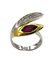 in oro bicolore 18 kt con rubino Birmano taglio navette di 1,44 ct circa e pavè di diamanti per 0,31 ct circa.