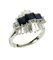 in oro bianco 18kt, con zaffiri blu naturali Thailandia di taglio carrè per 1,70 ct circa affiancati da diamanti taglio baguette in degradè per 2,18 ct circa.