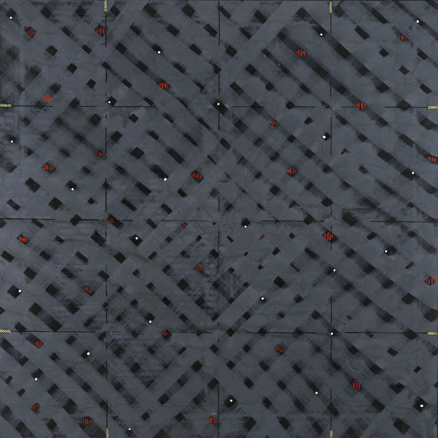 Gastone Biggi , Roma 1925 , "Spazio temporaneo" 1990 vinilici su tela, cm 130x130 Firmato, titolato e datato '90 al retro L'opera è accompagnata da certificato di autenticità su fotografia rilasciato dall'Archivio Biggi col n. di cat.1533