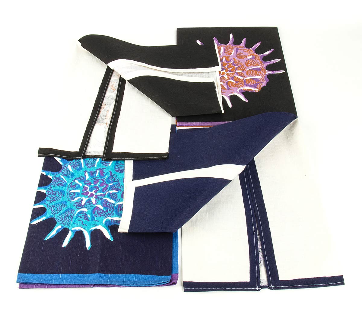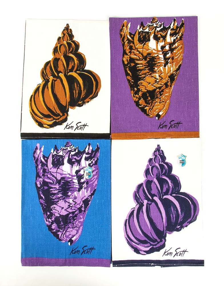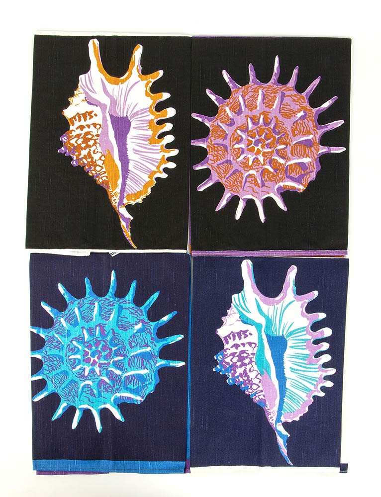 Lotto di 4 canovacci in cotone tema conchiglie