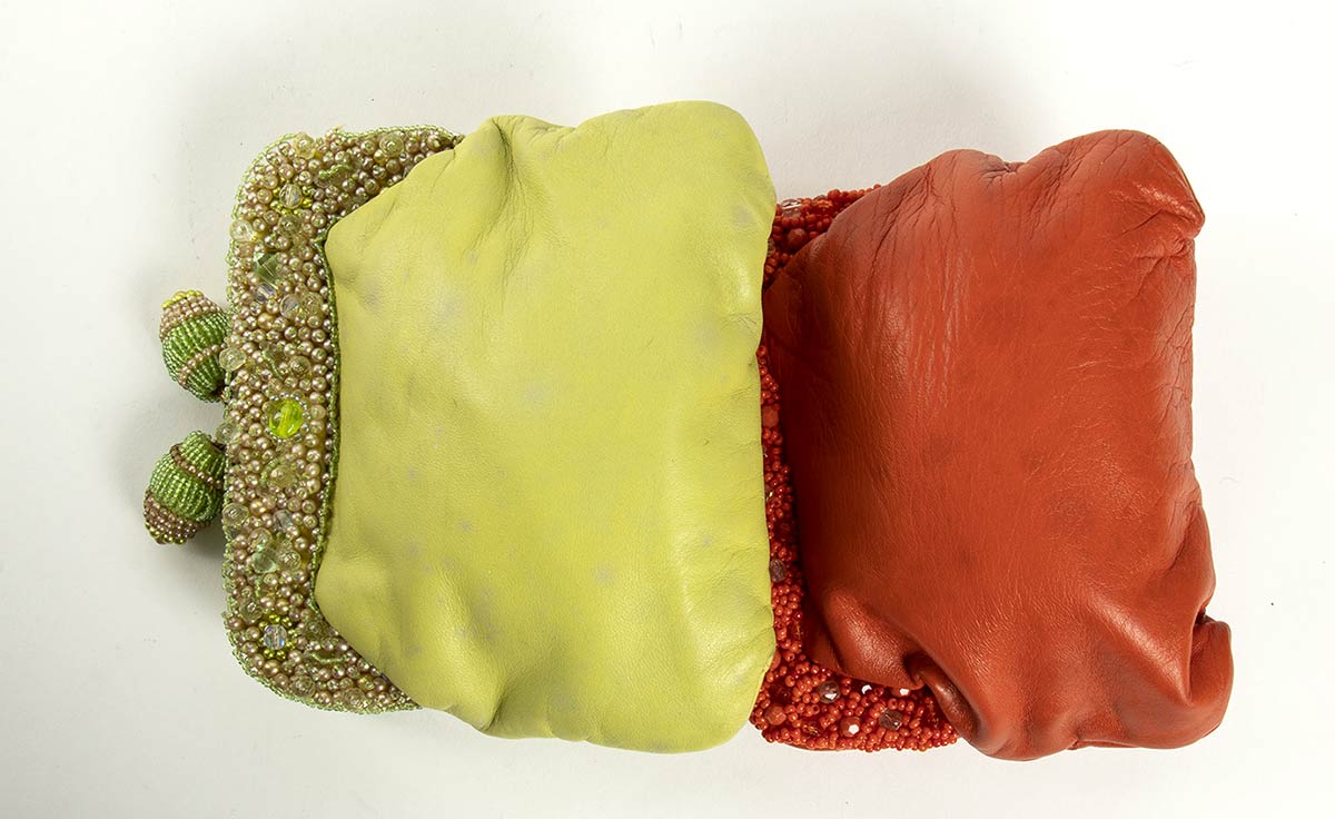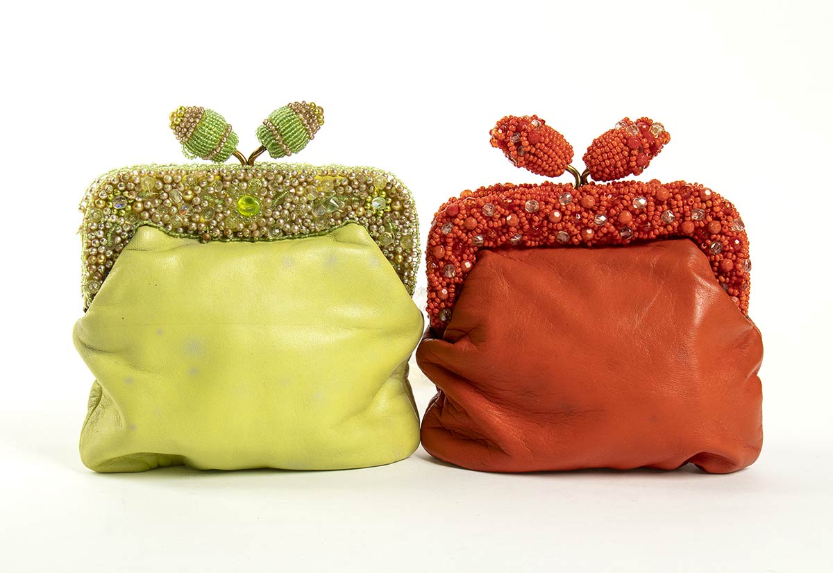 Lotto di 2 borsette da sera in pelle, telaio decorato con perle/perline