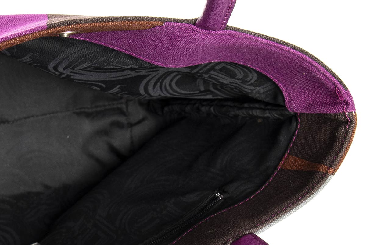 Borsetta in tela, manici in pelle