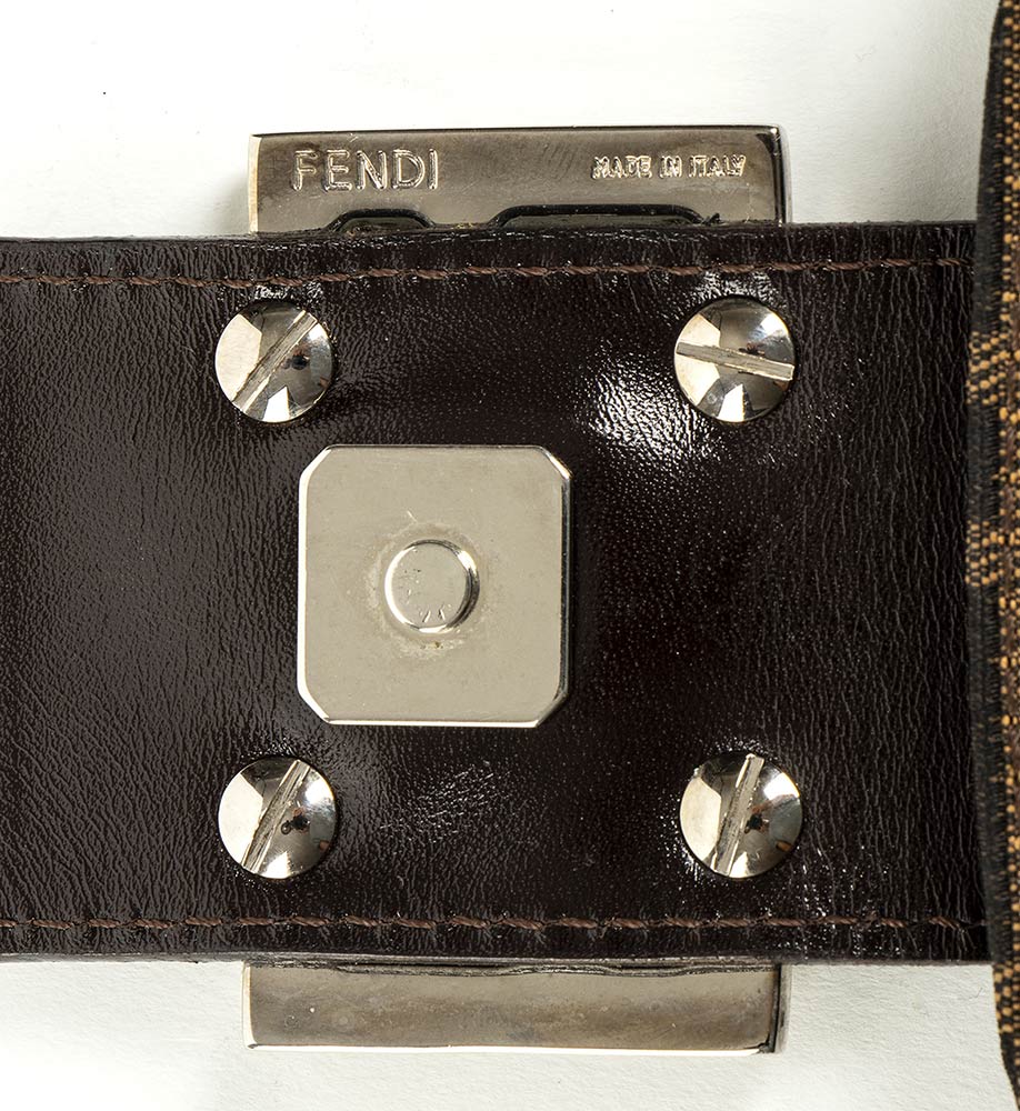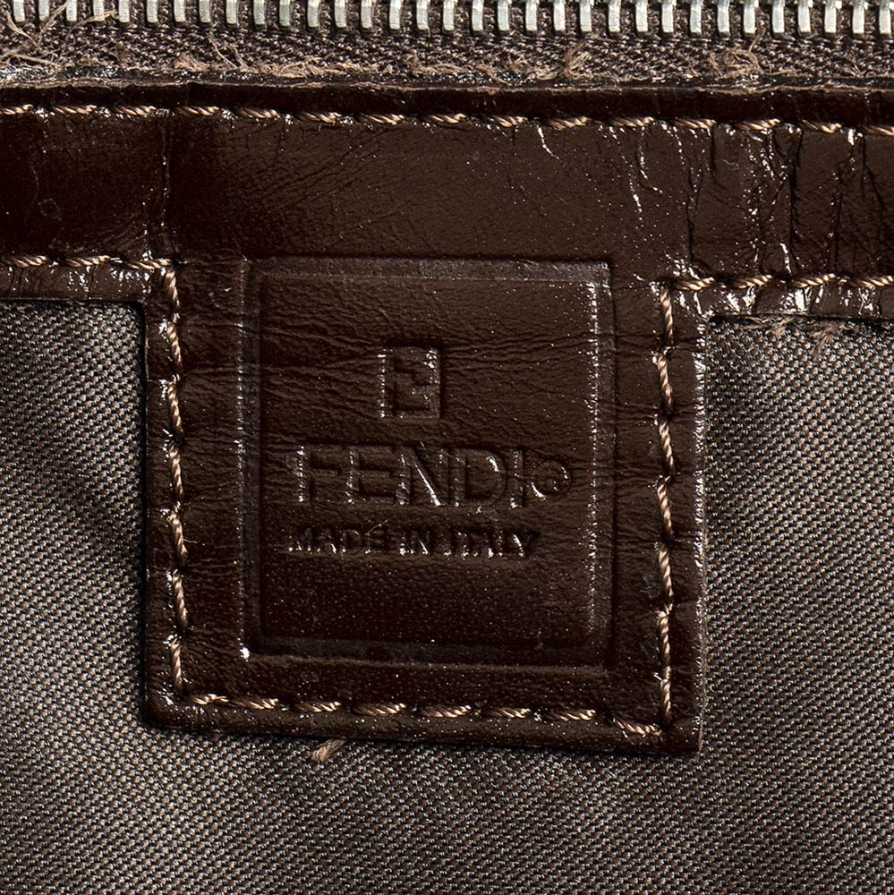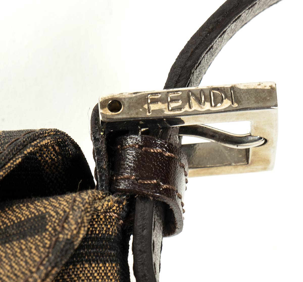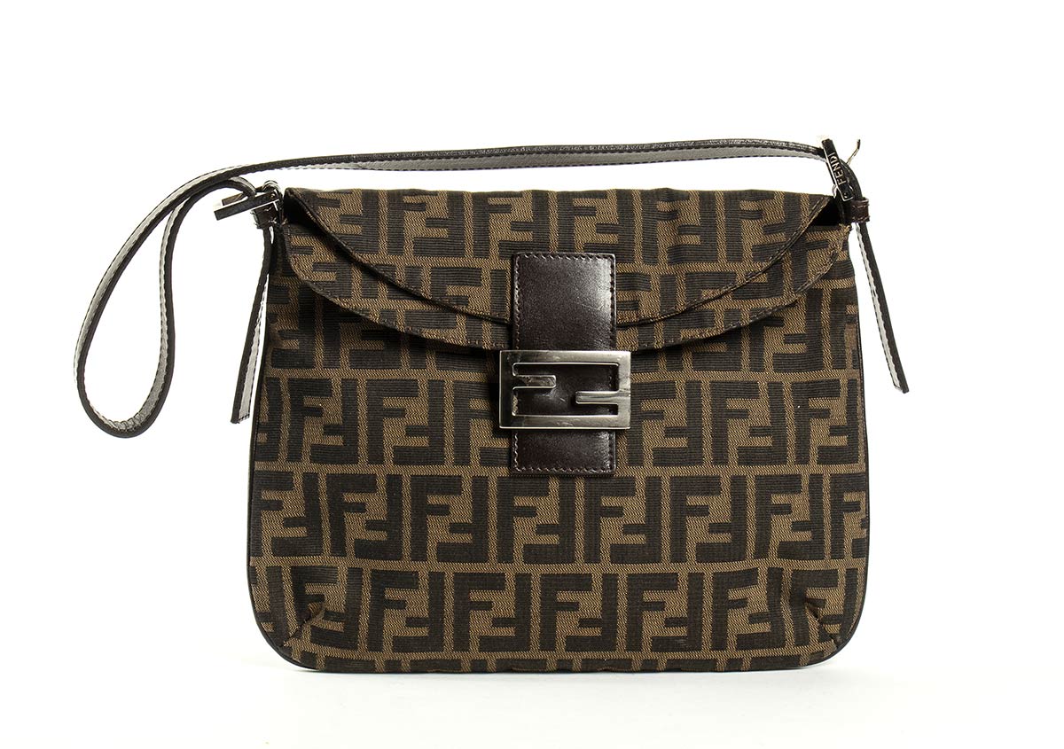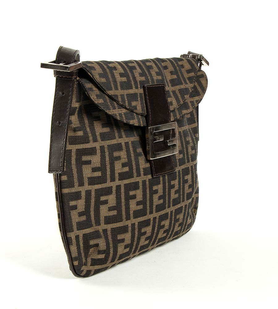 Borsa in tela con monogramma e dettagli in pelle marrone