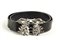 Cintura in pelle nera, fibbia in metallo a forma di teste di aquila. Rifacimento storico del modello 1968
