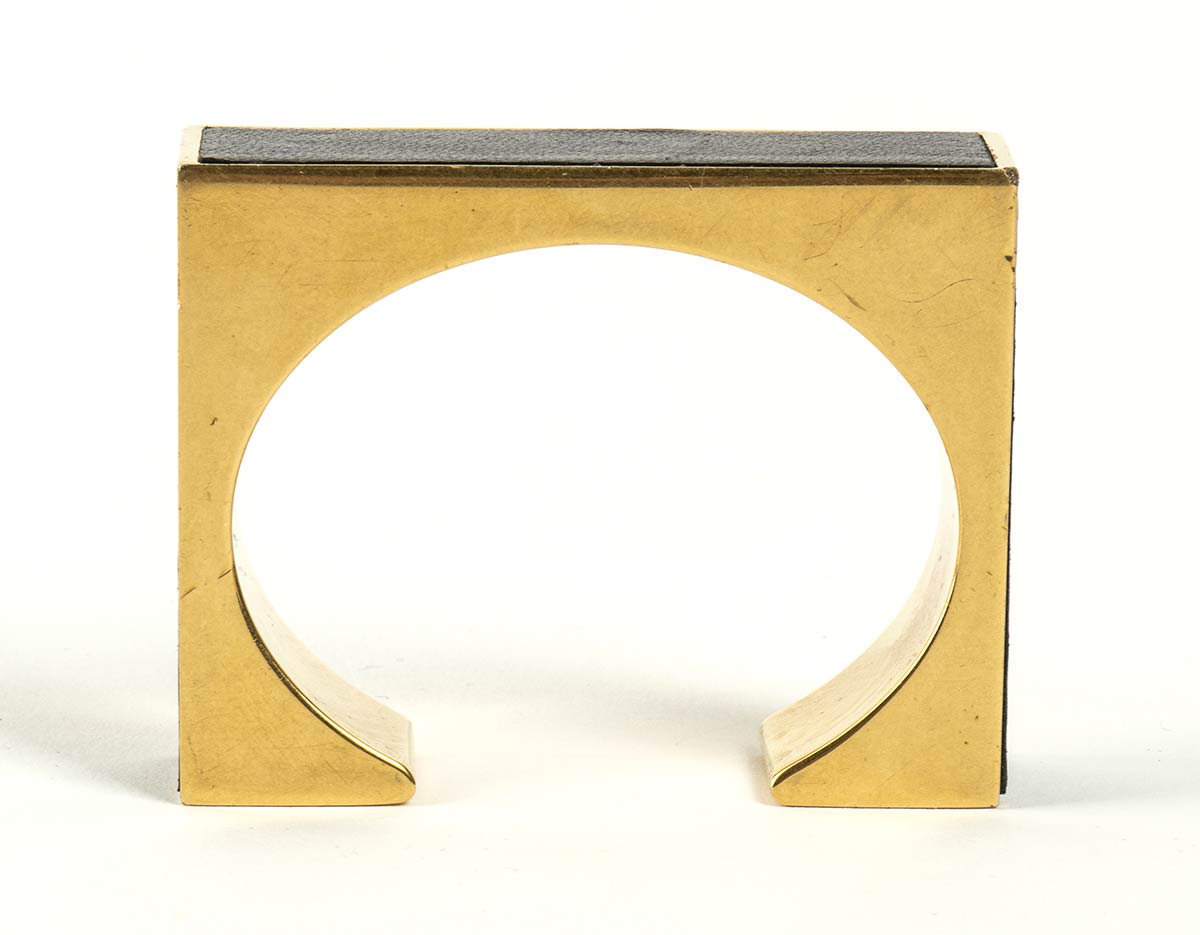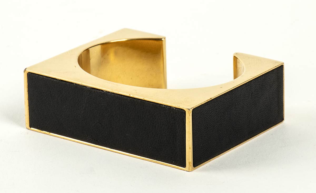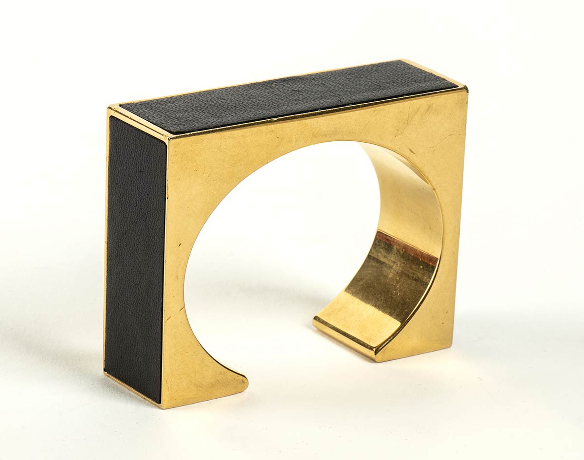 Bracciale rigido in metallo dorato e pelle nera