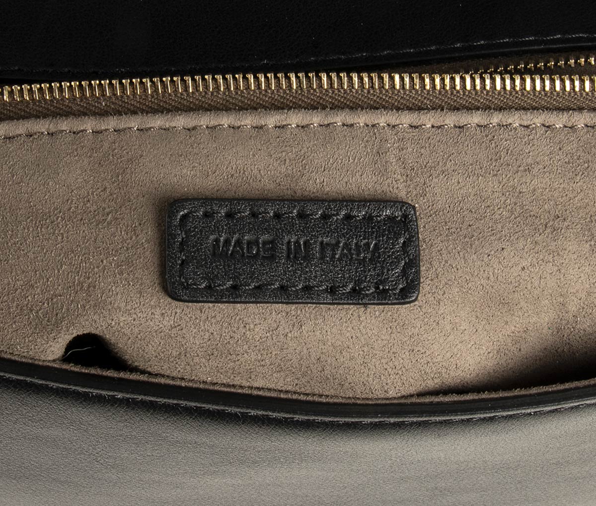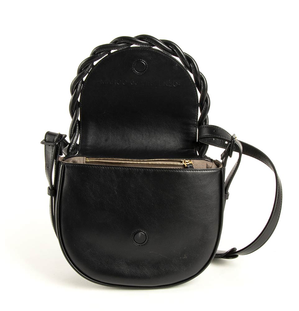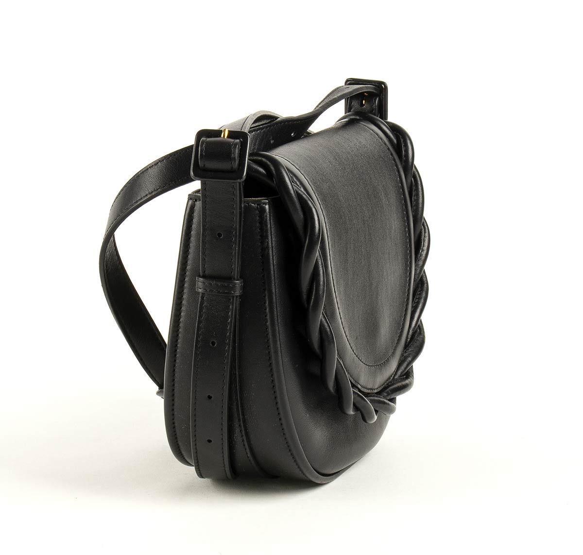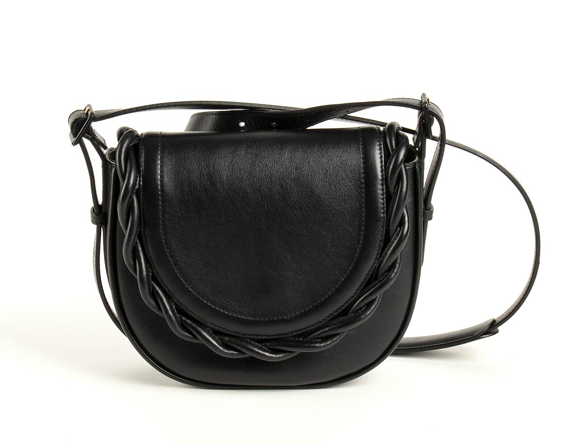 Borsa in pelle nera, dettaglio in pelle intrecciata