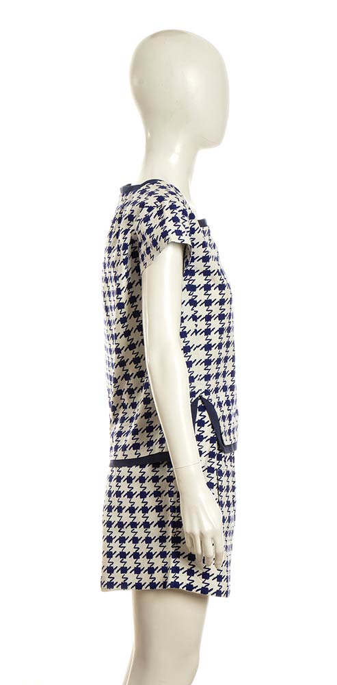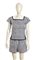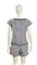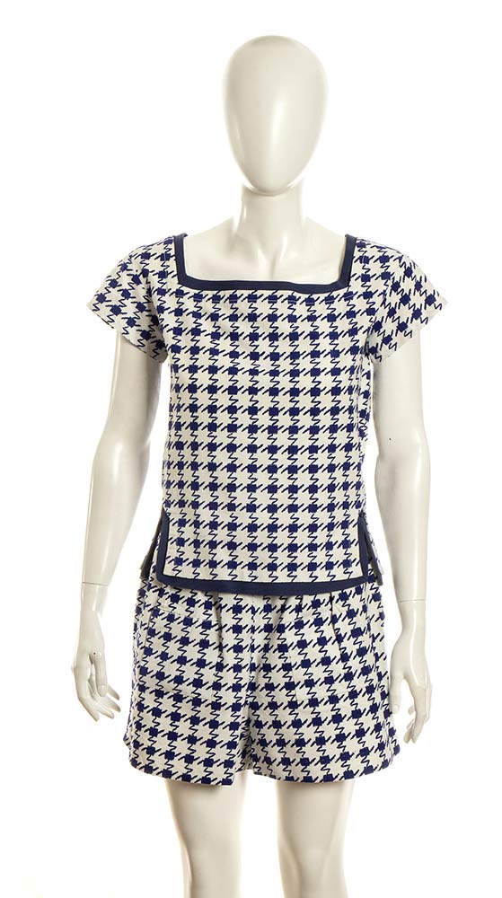 Completo da spiaggia (maglietta e pantaloncino) in tessuto bianco misto cotone e lino pattern blu