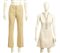 Lotto di 2 articoli : miniabito in misto cotone/seta matelassè bianco, dettagli ricamati con perline, pantalone in misto lana/cotone color beige