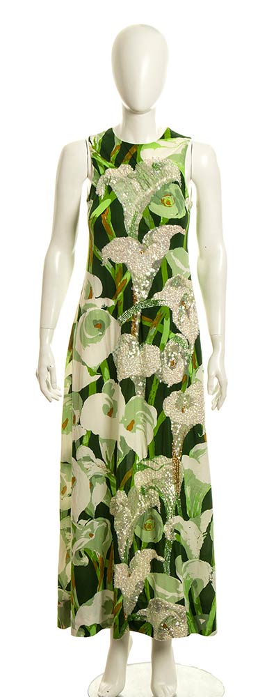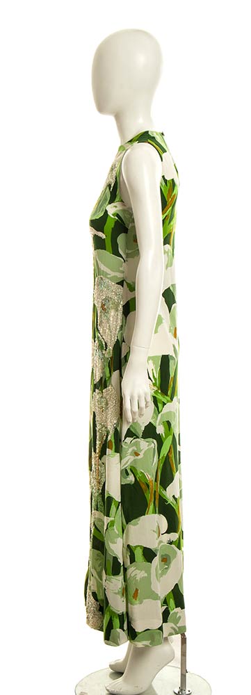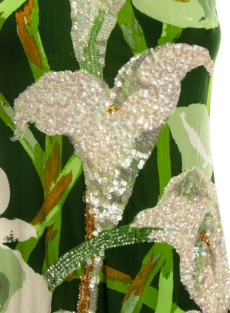Abito lungo in jersey pattern con calle, paillettes